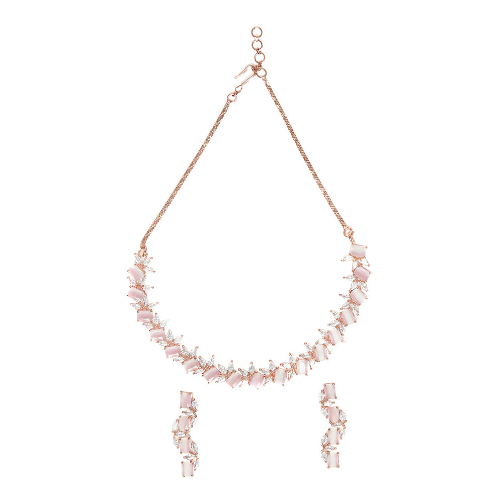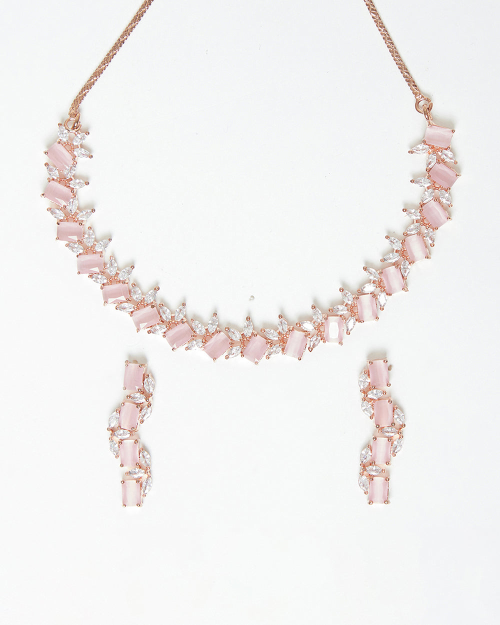 Rose Gold Plated Pink Studded CZ Necklace Sets