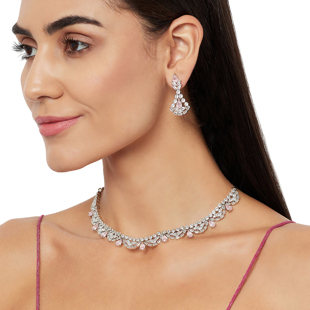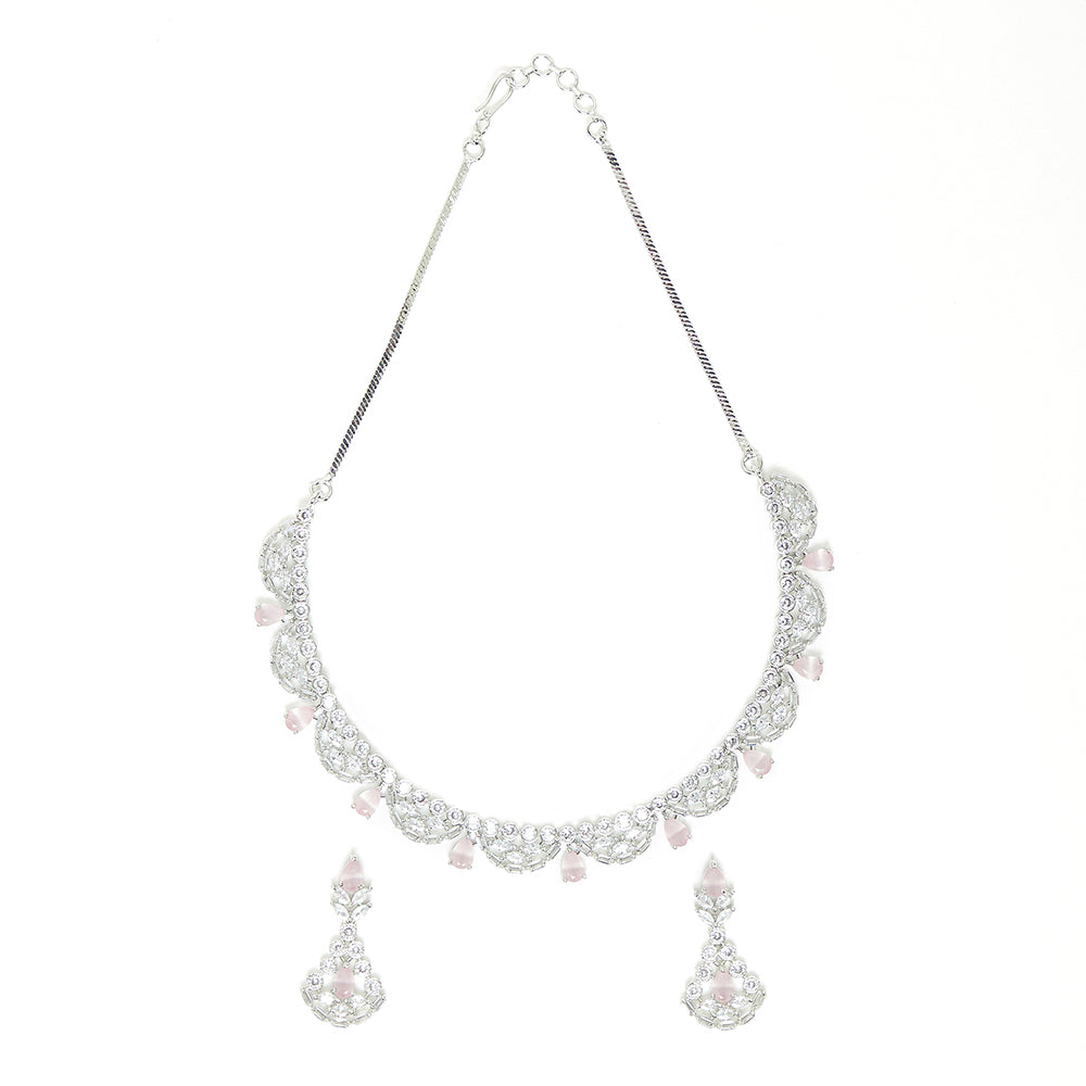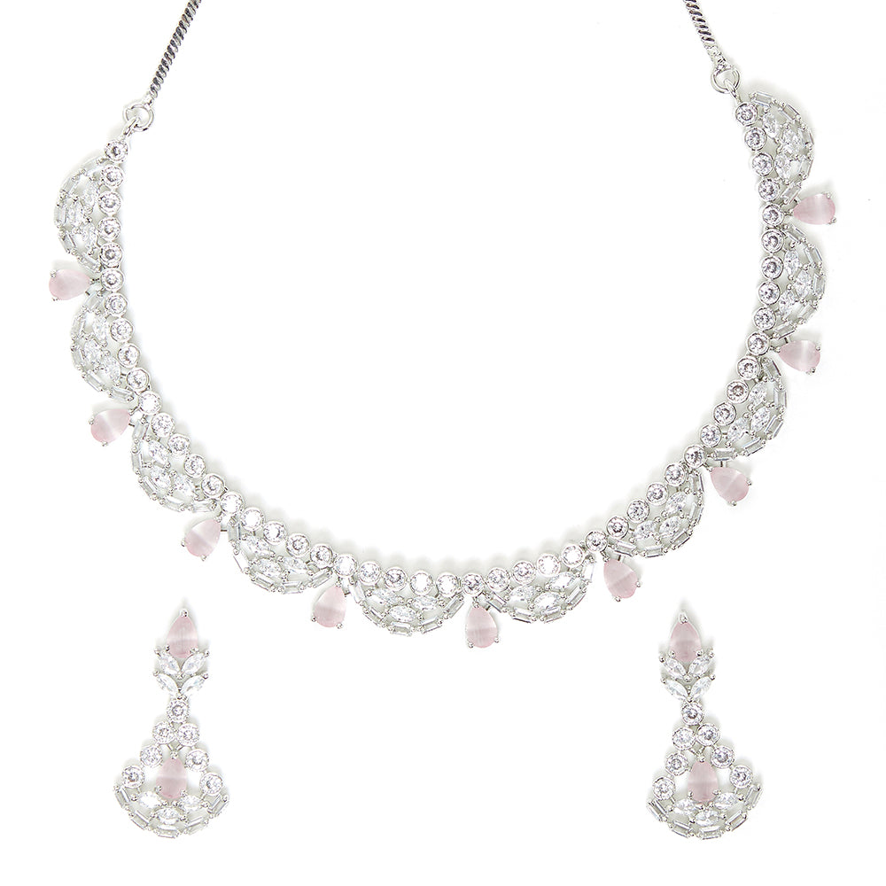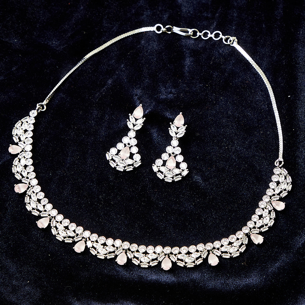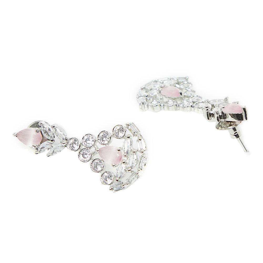 CZ Silver Plated Pink & White Jhumka Jewellery Set