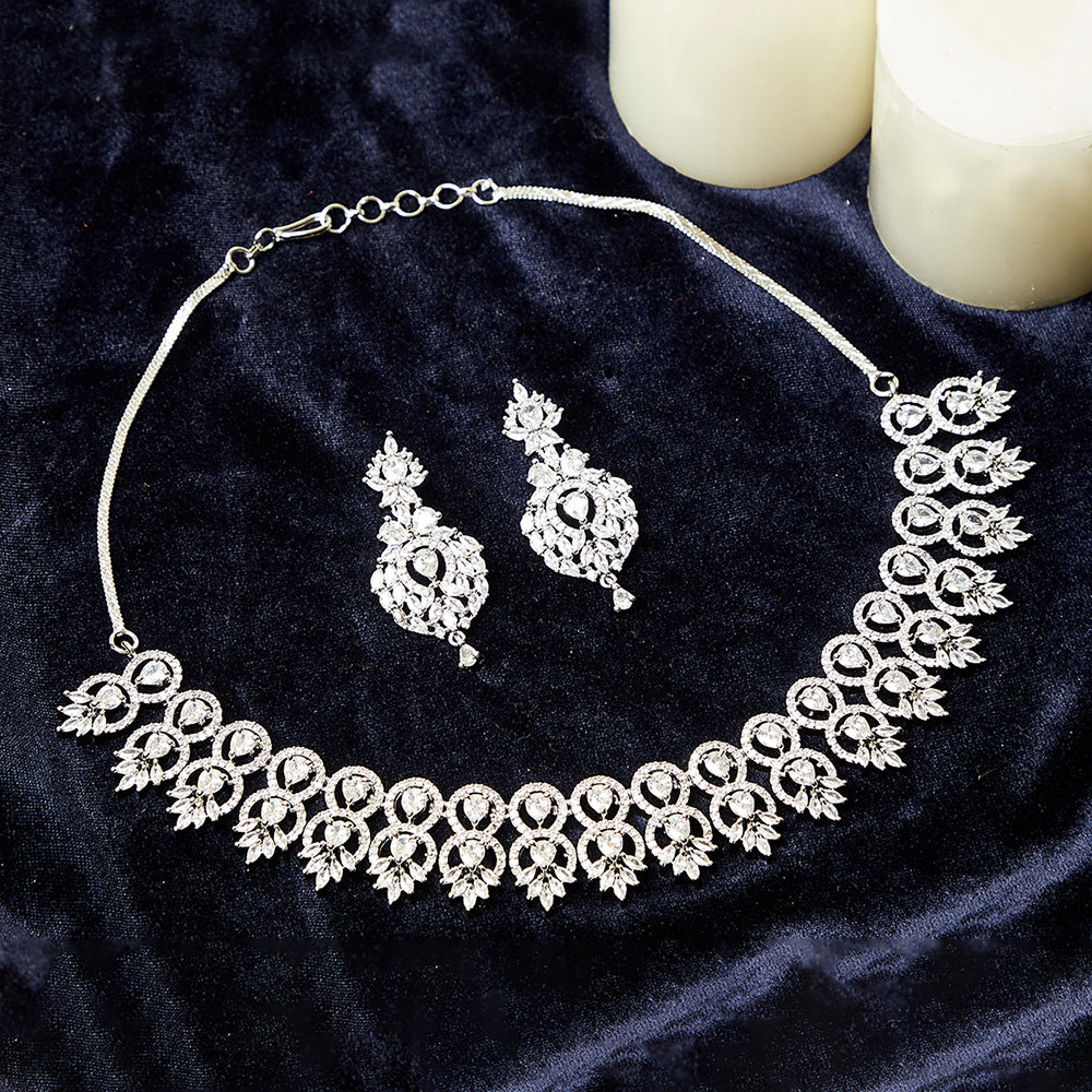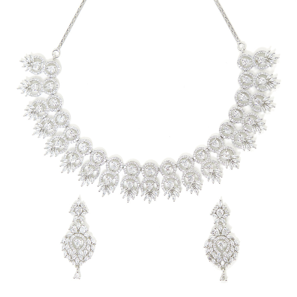 CZ Silver Plated White & White Jhumka Jewellery Set