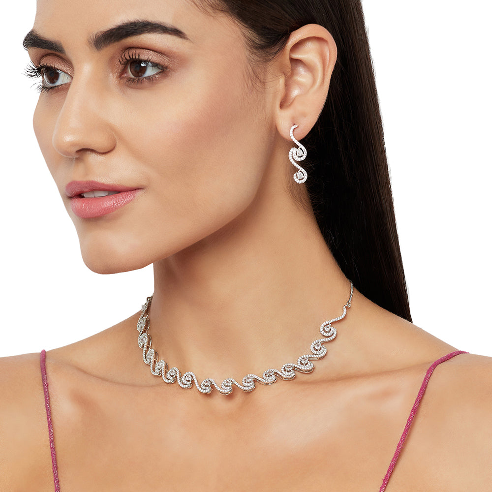 The latest range of necklace sets from Voyalla is an instant best seller for a couple of reasons. Made out of brass, the silver coloured accesory is replete with drop earings of the same material. Available both offline and online, this is a must have for the ones looking for something new.