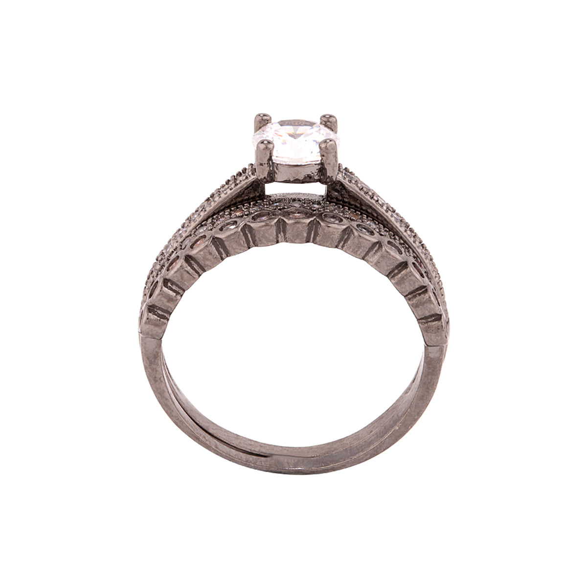 Stackable brass rings featuring a classic black rhodium plating. Zircon gems adorned and good for everyday wear. This piece of jewelry comes with the Voylla assurance of quality and durability.