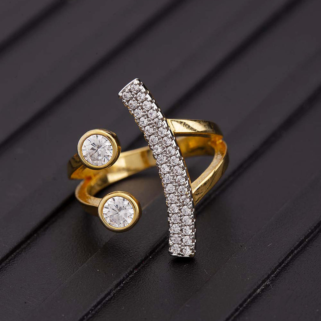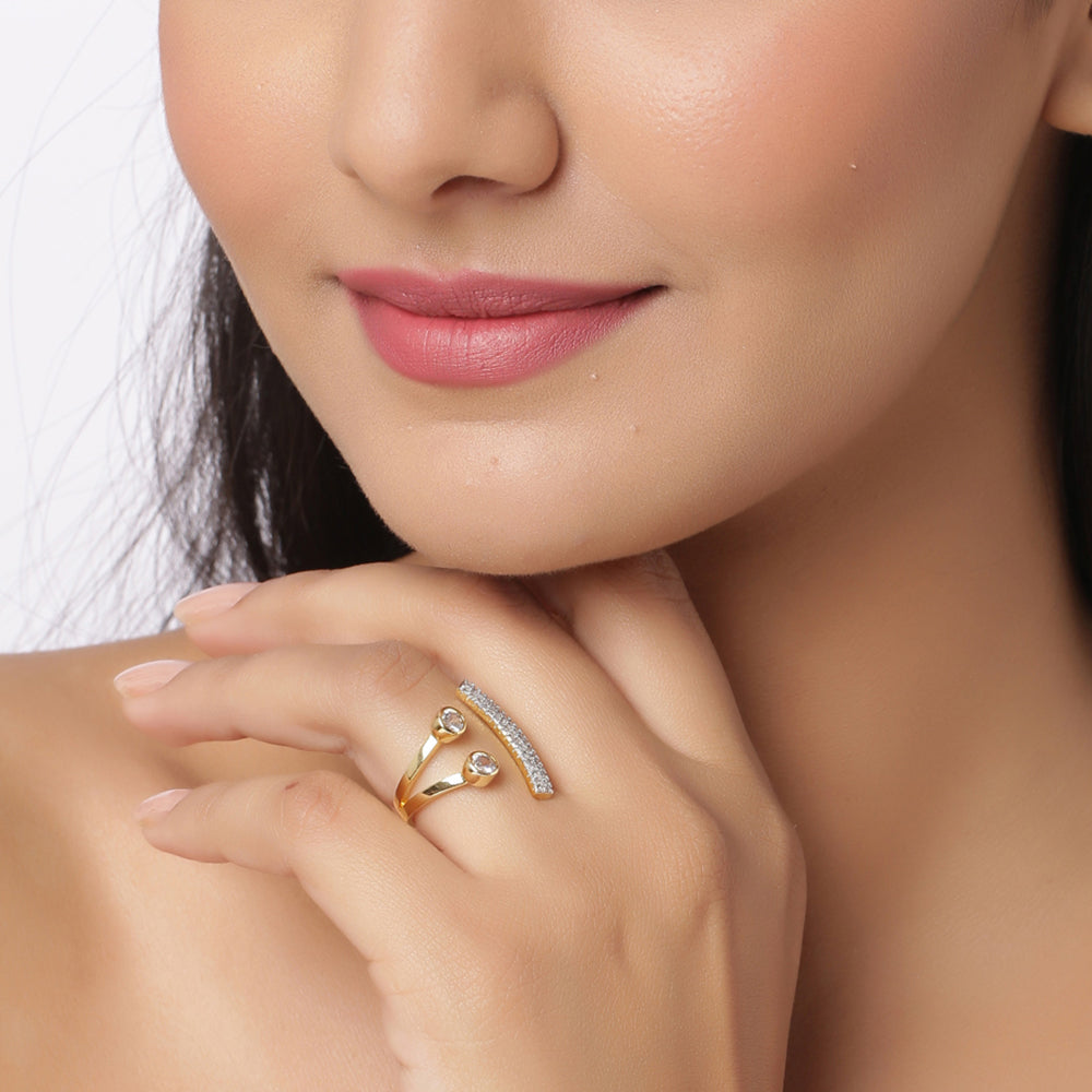 Half moon motif brass ring, embellished with gems and two tone plated. Wear with party outfits.