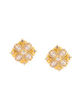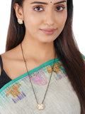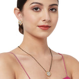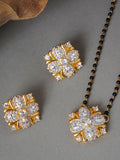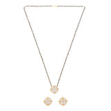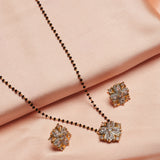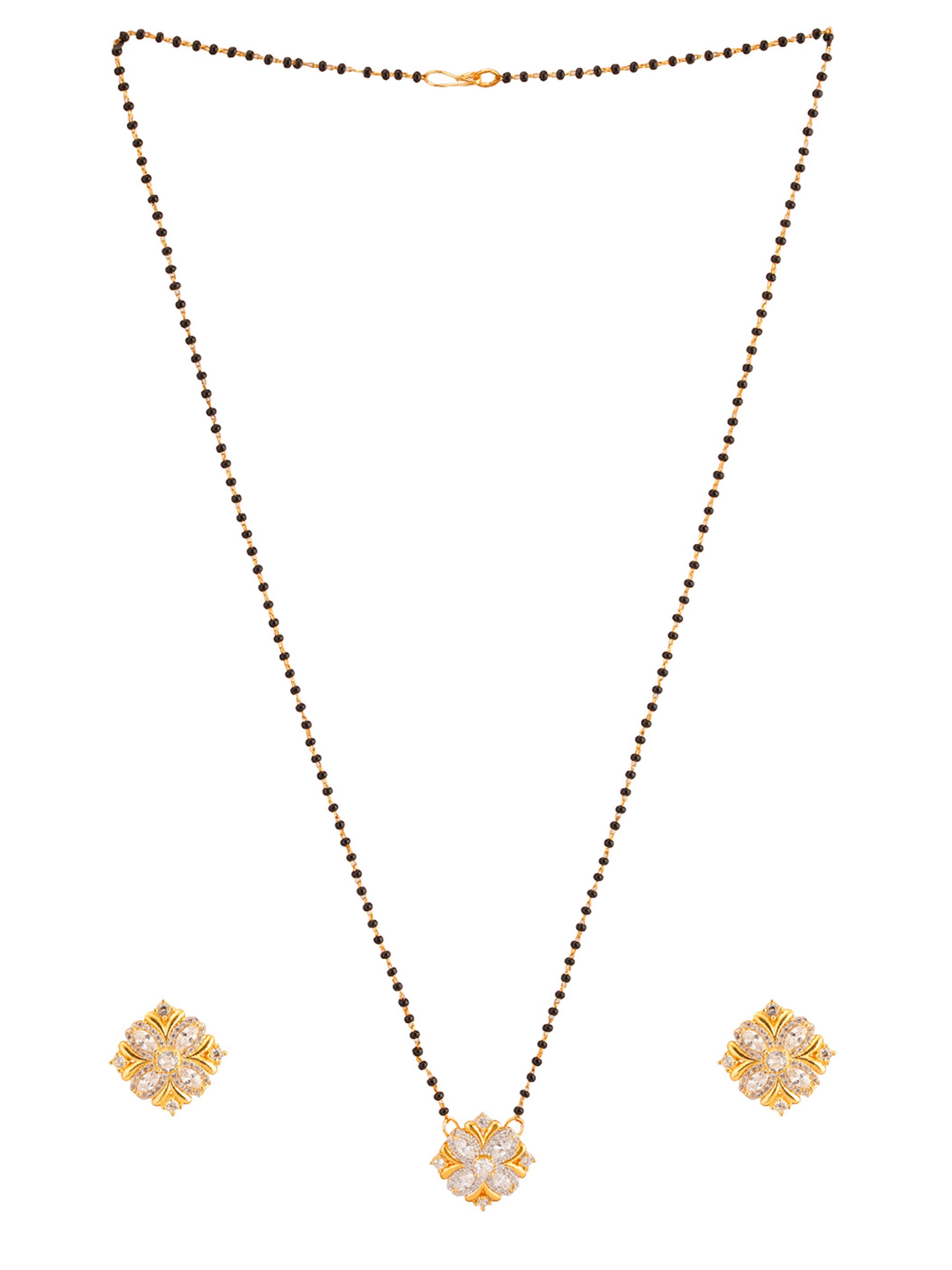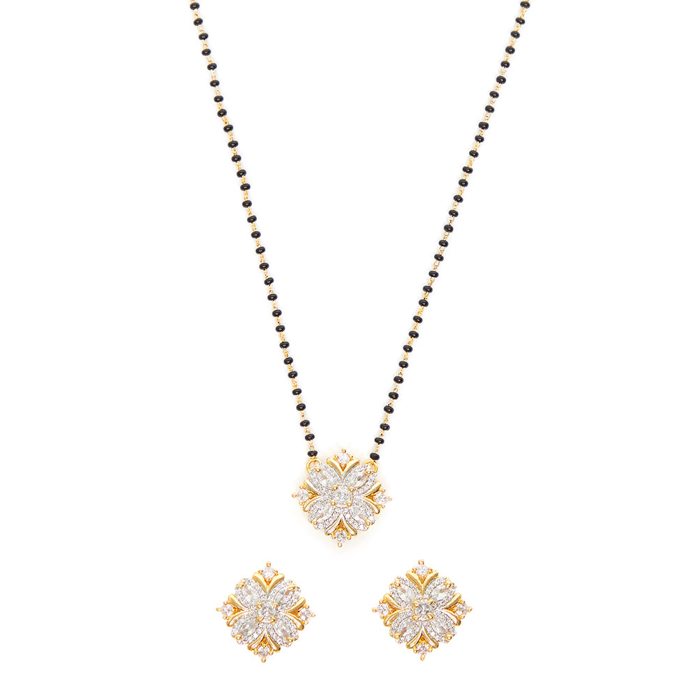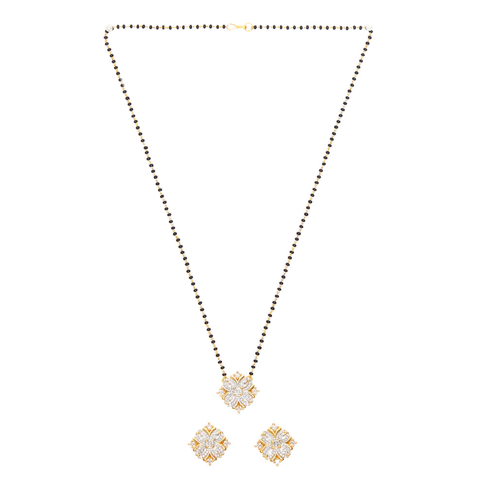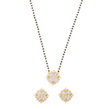 Shimmering Floret American Diamond CZ Gold Plated Brass Black Beaded Mangalsutra with Earrings