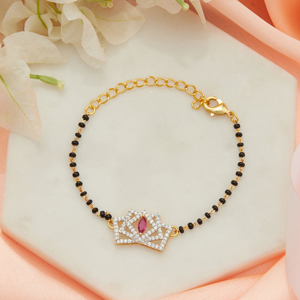Shimmering Floret American Diamond CZ Black Beads with Golden touch Mangalsutra Bracelet