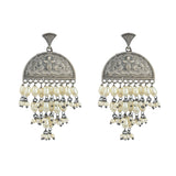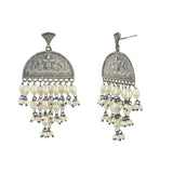 Antique Elegance Brass Faux Pearls Adorned Oxidised Silver Plated Drop Earrings
