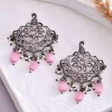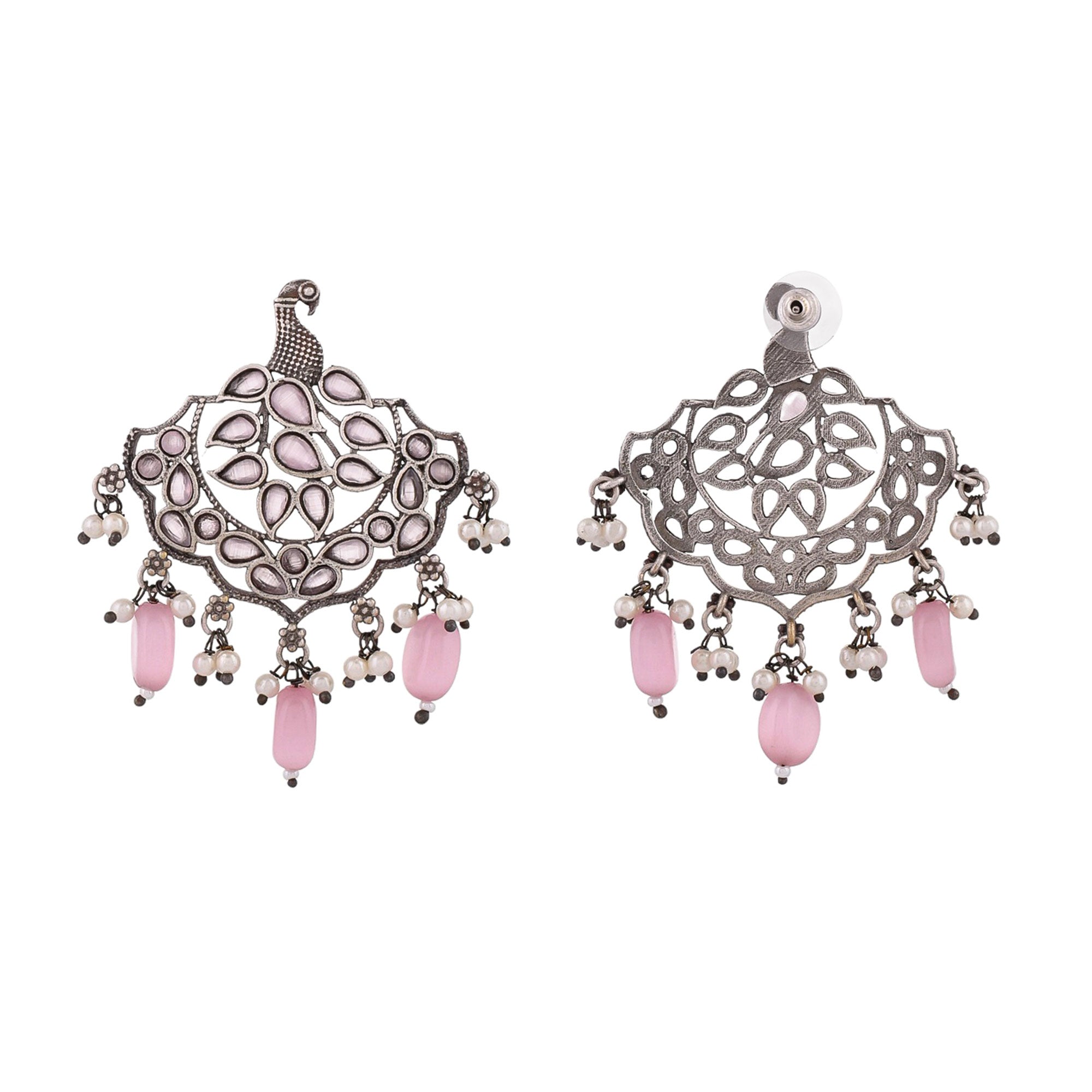 Antique Elegance Faux Pearls And Kundan Adorned Brass Silver Oxidized Plated Earrings
