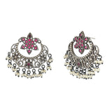 Antique Elegance Faux Pearls and Kundan Filigree Design Silver Plated Brass Earrings