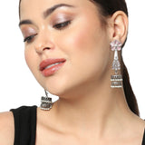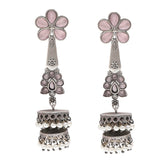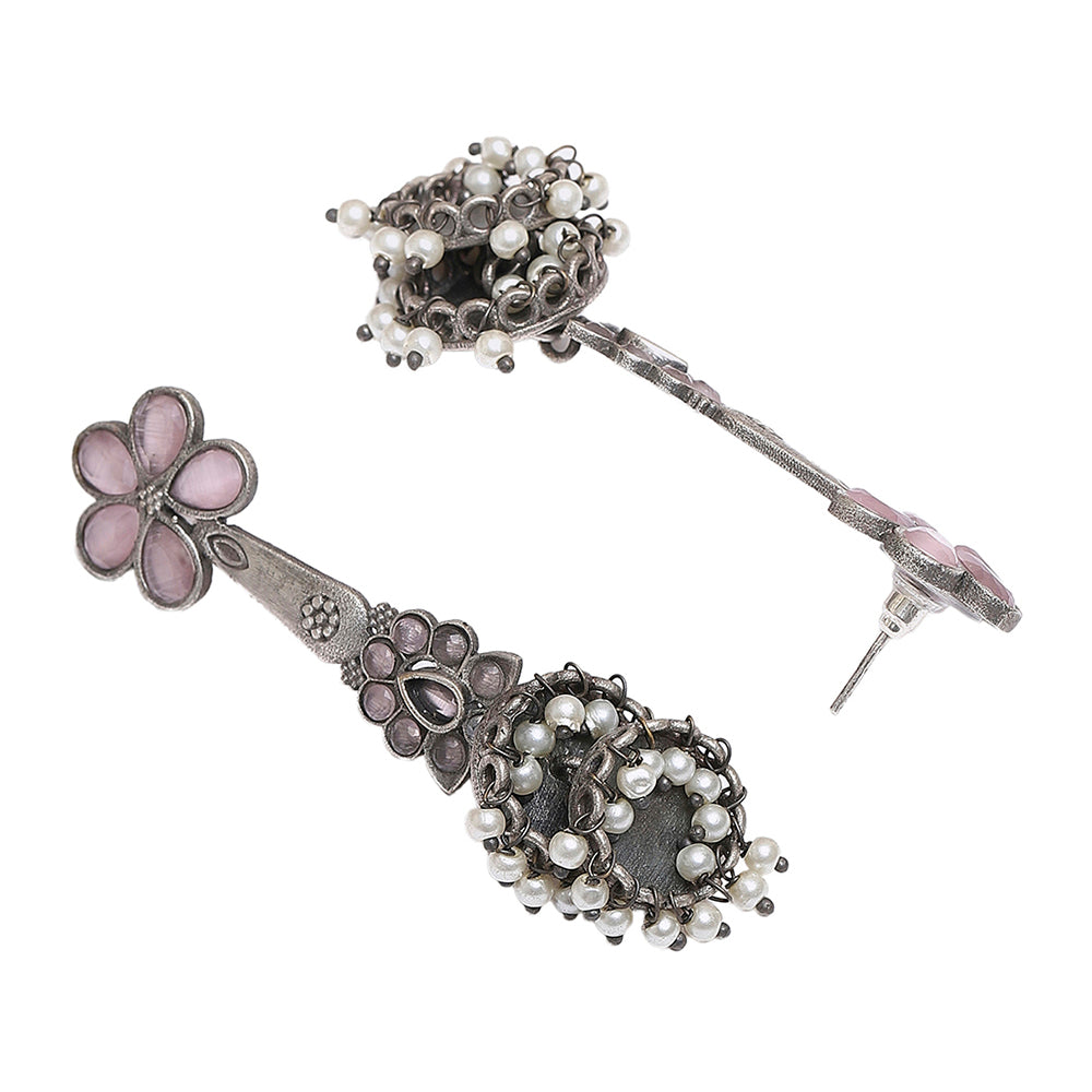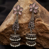 Antique Elegance Floral Motifs Pearls Adorned Brass Silver Oxidised Plated Earrings