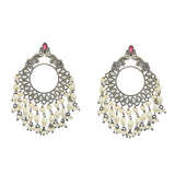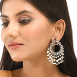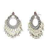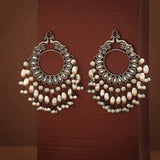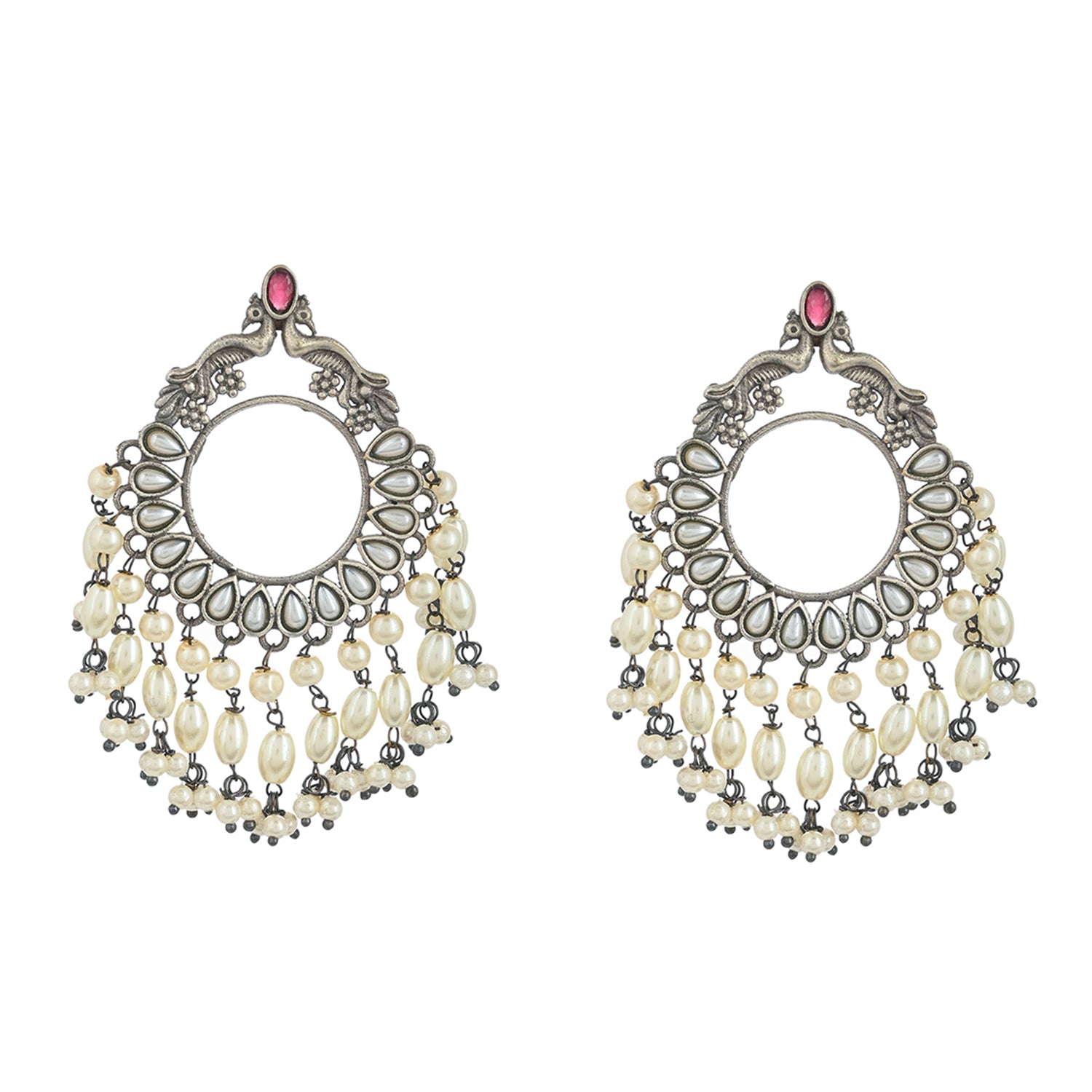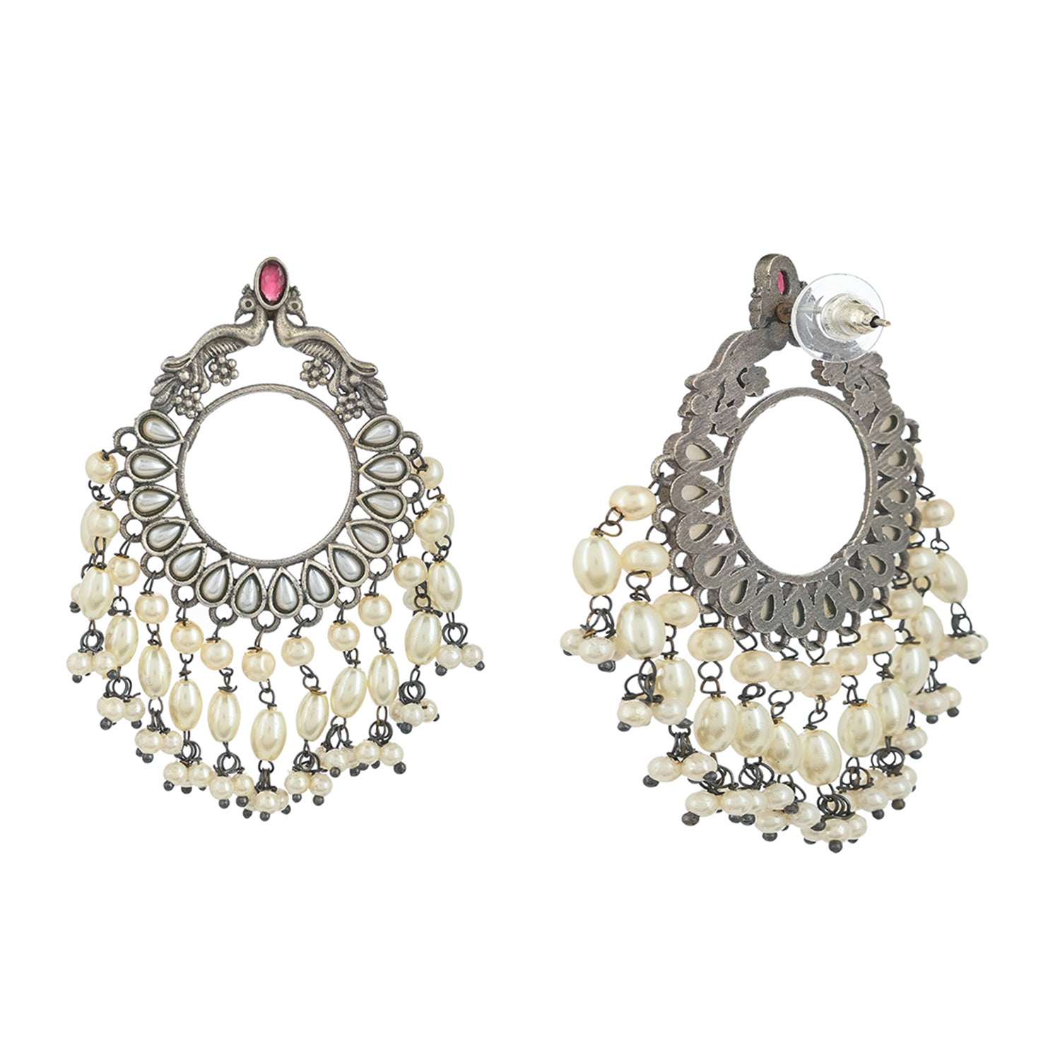 Antique Elegance Peacock Motif Faux Pearls Brass Oxidised Silver Plated Earrings