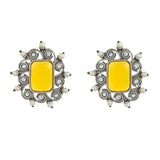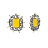 Antique Elegance Square Cut Kundan and Faux Pearls Brass Silver Plated Earrings