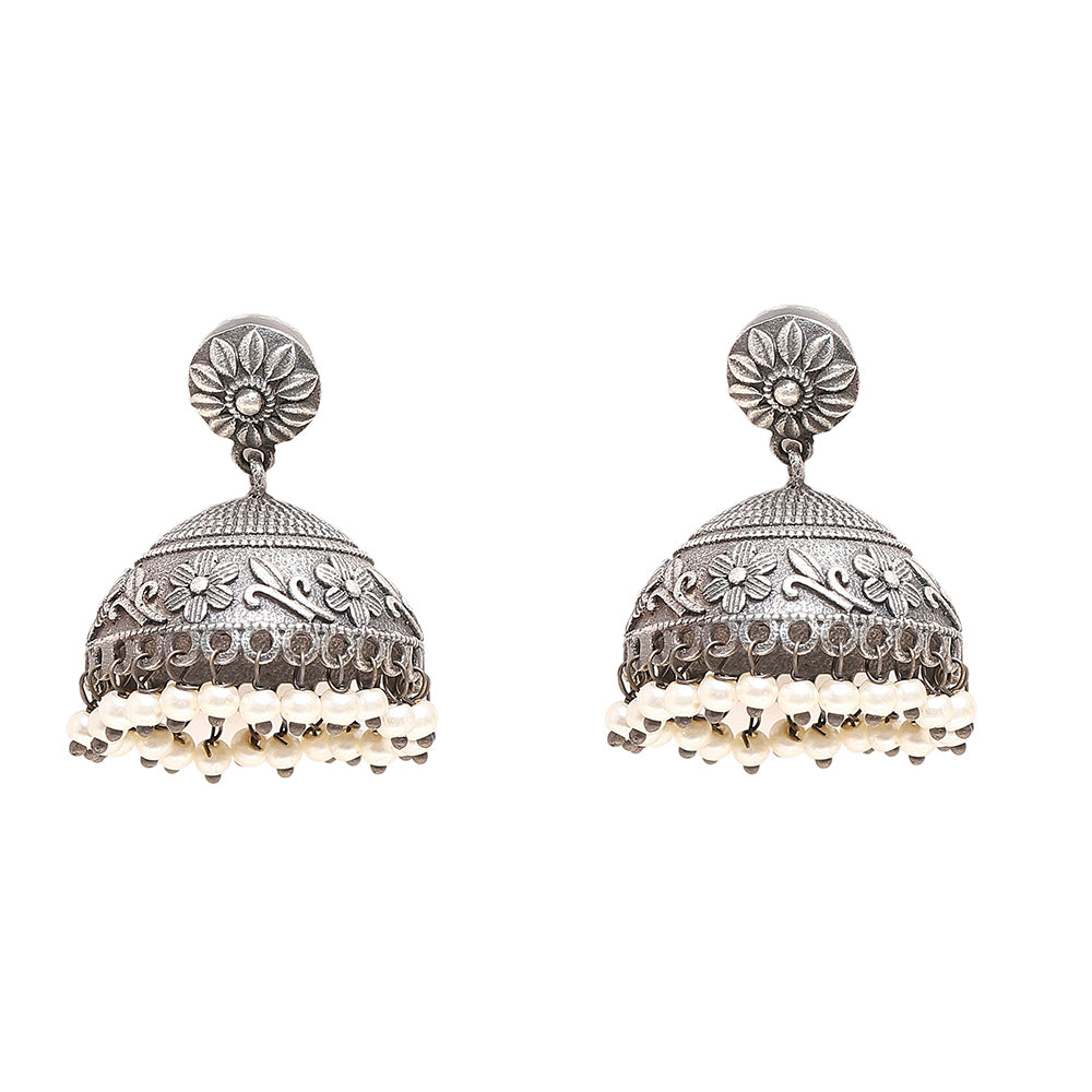 Antique Elegance Faux Pearls Silver Plated Jhumka Earrings