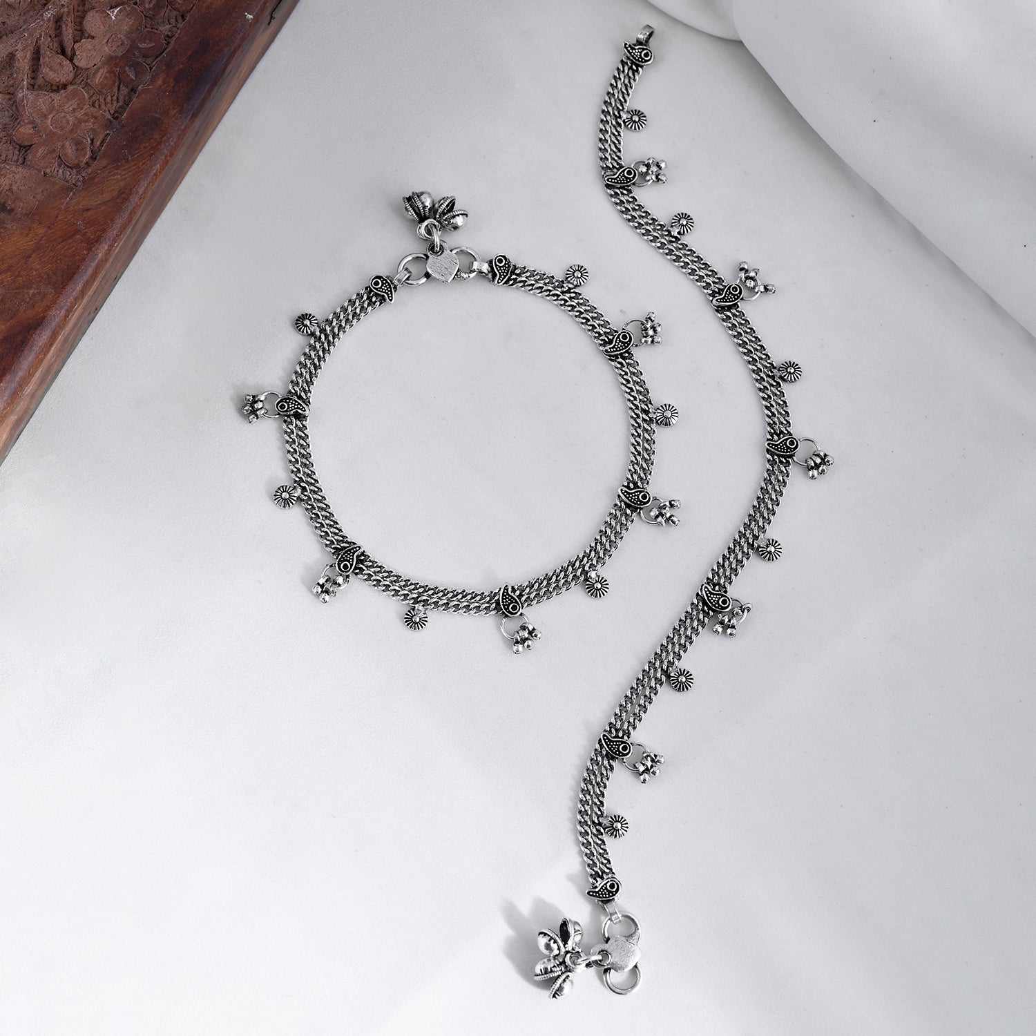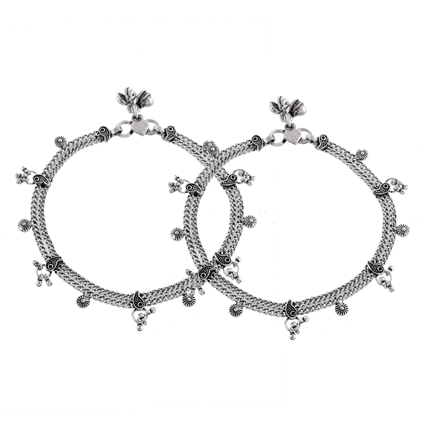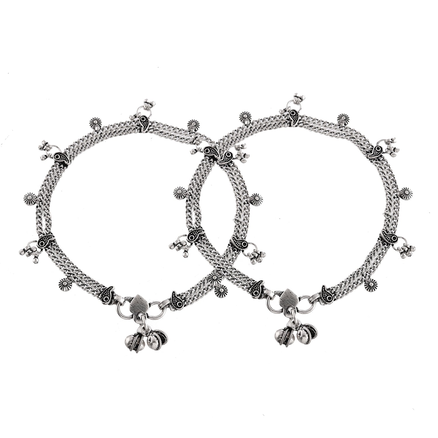 Antique Essentials Noor Jhanjhar Oxidised Anklet Set
