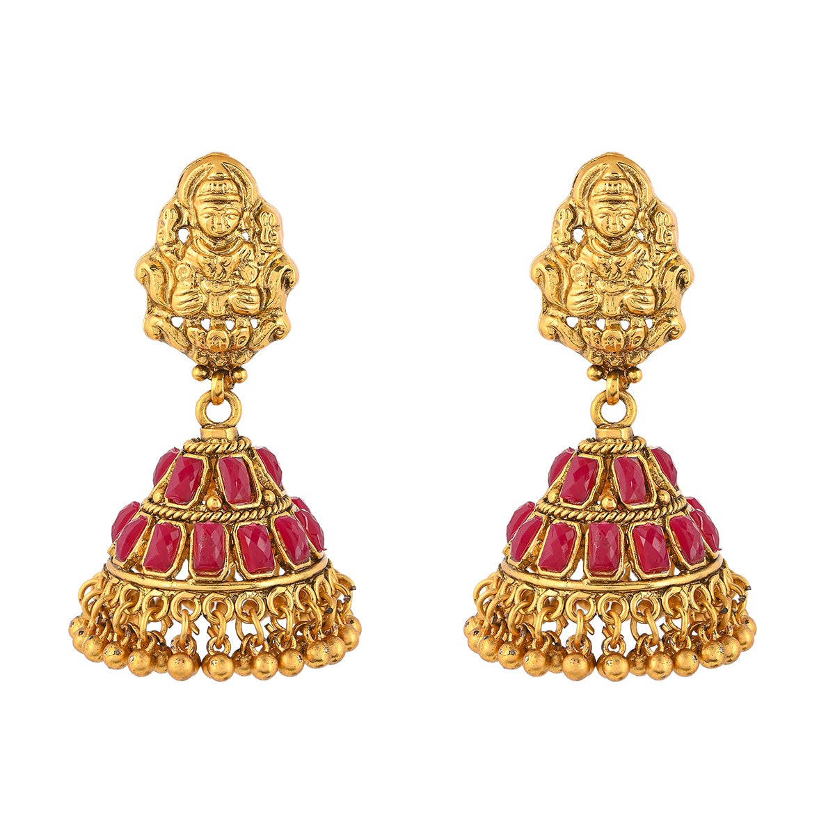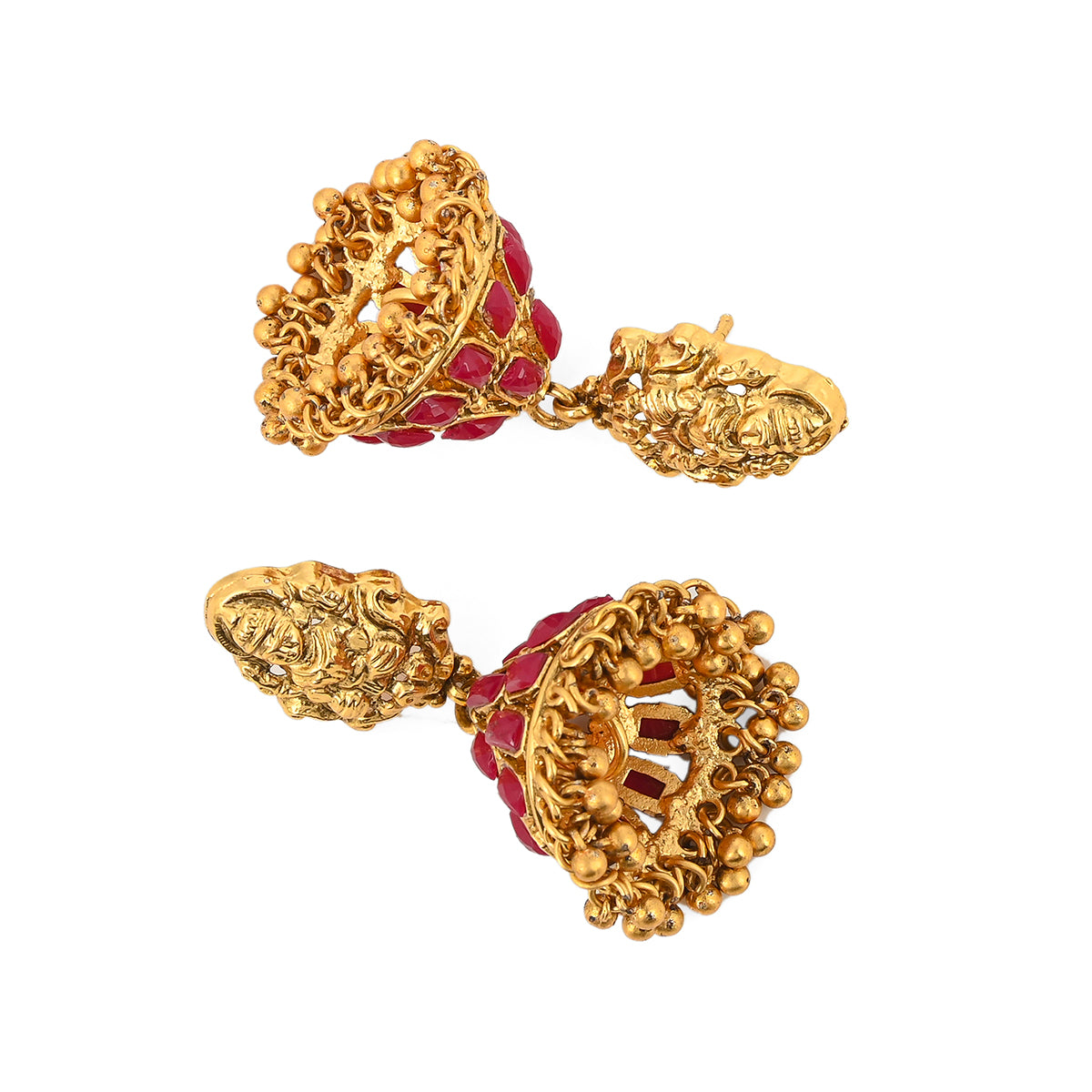Antique Inspired Gold Toned CZ Adorned Brass Temple Jewellery Set