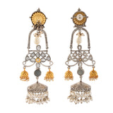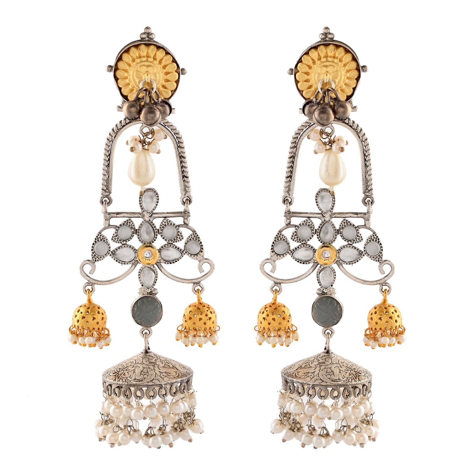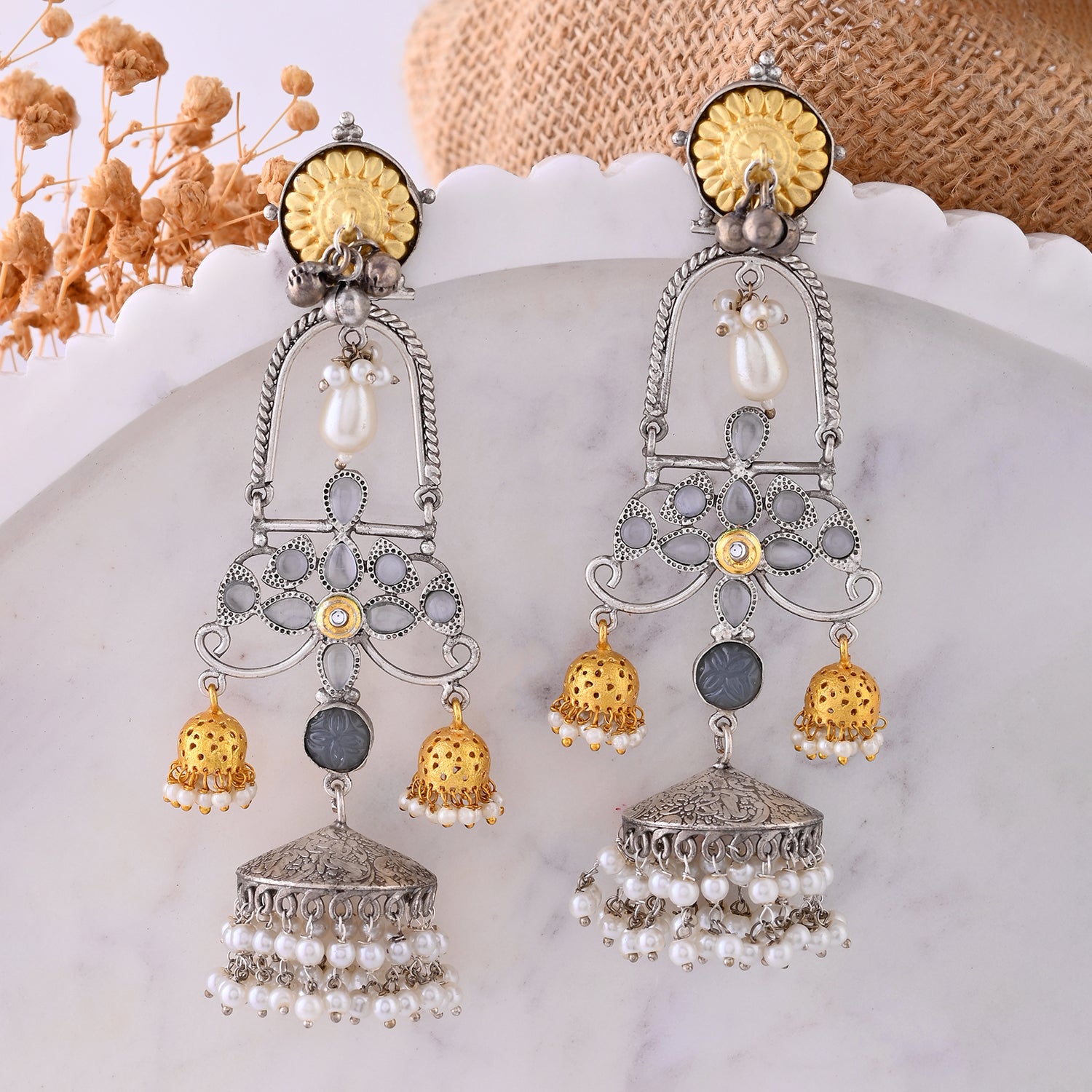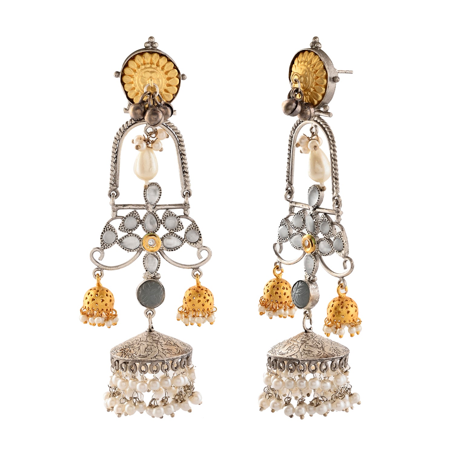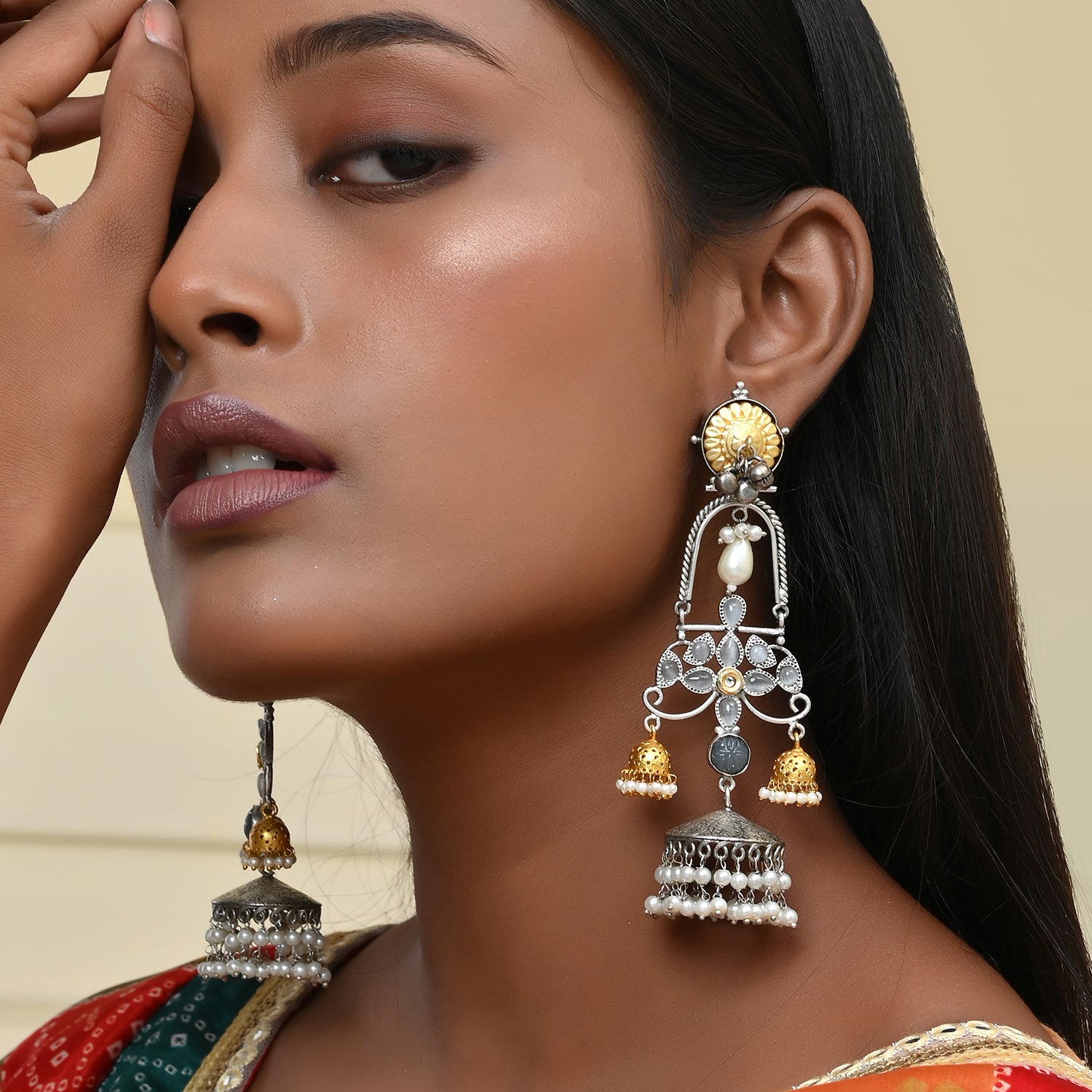 Antique Opulance Floral Statement Chandbali Jhumka Earrings