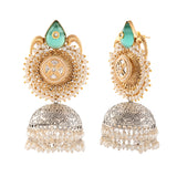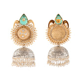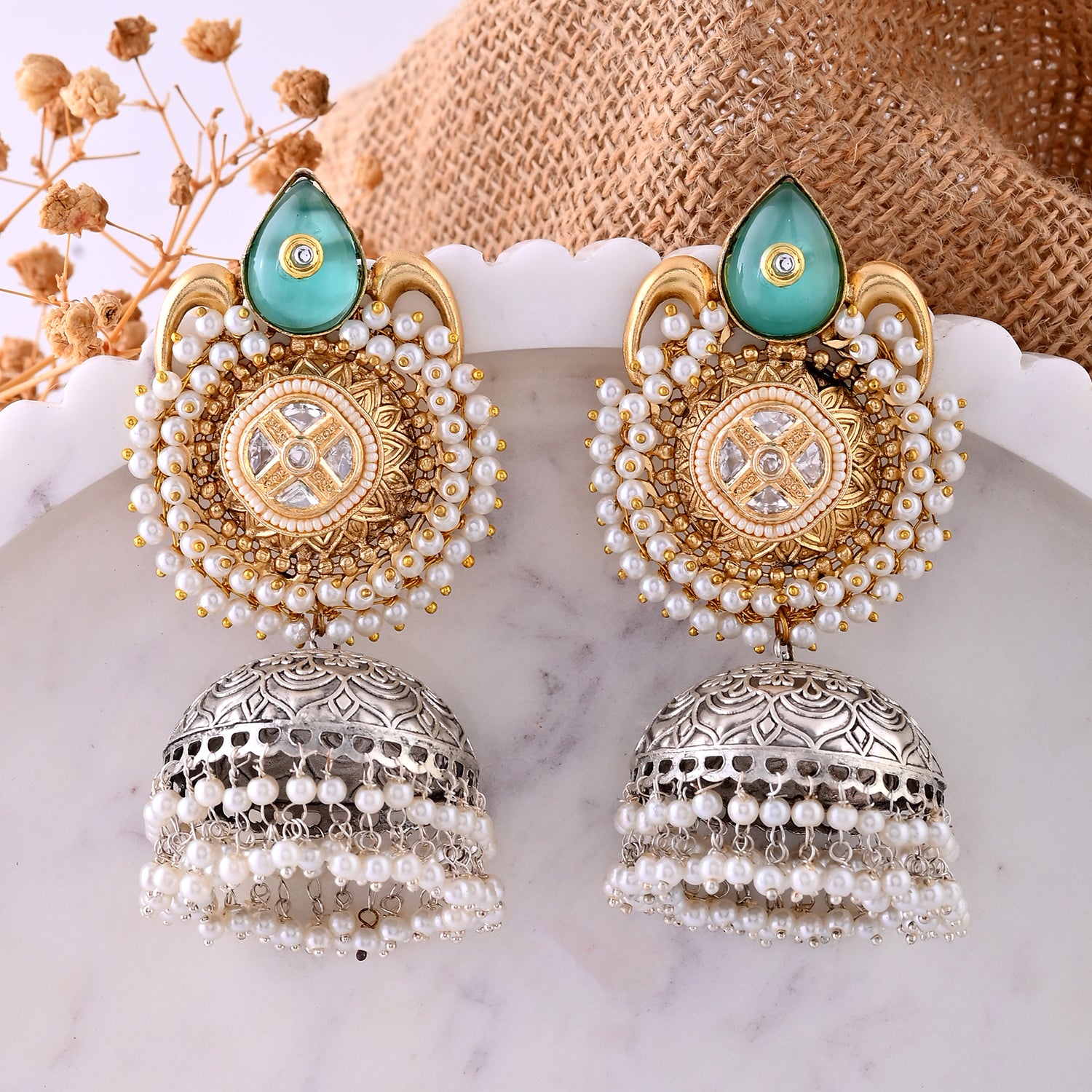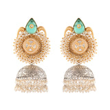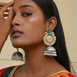Antique Opulance Statement Green Teardrop Chandbali Jhumka Earrings