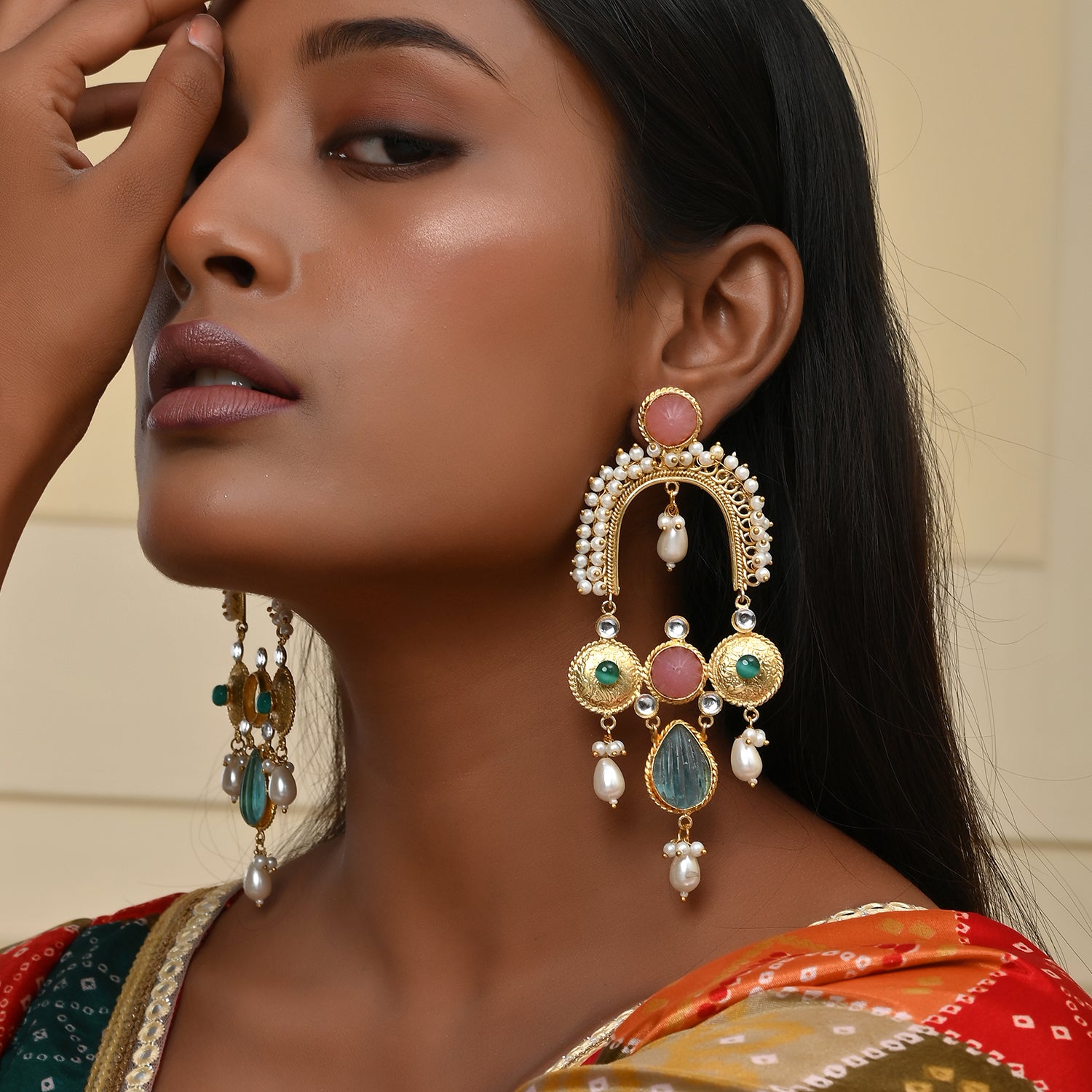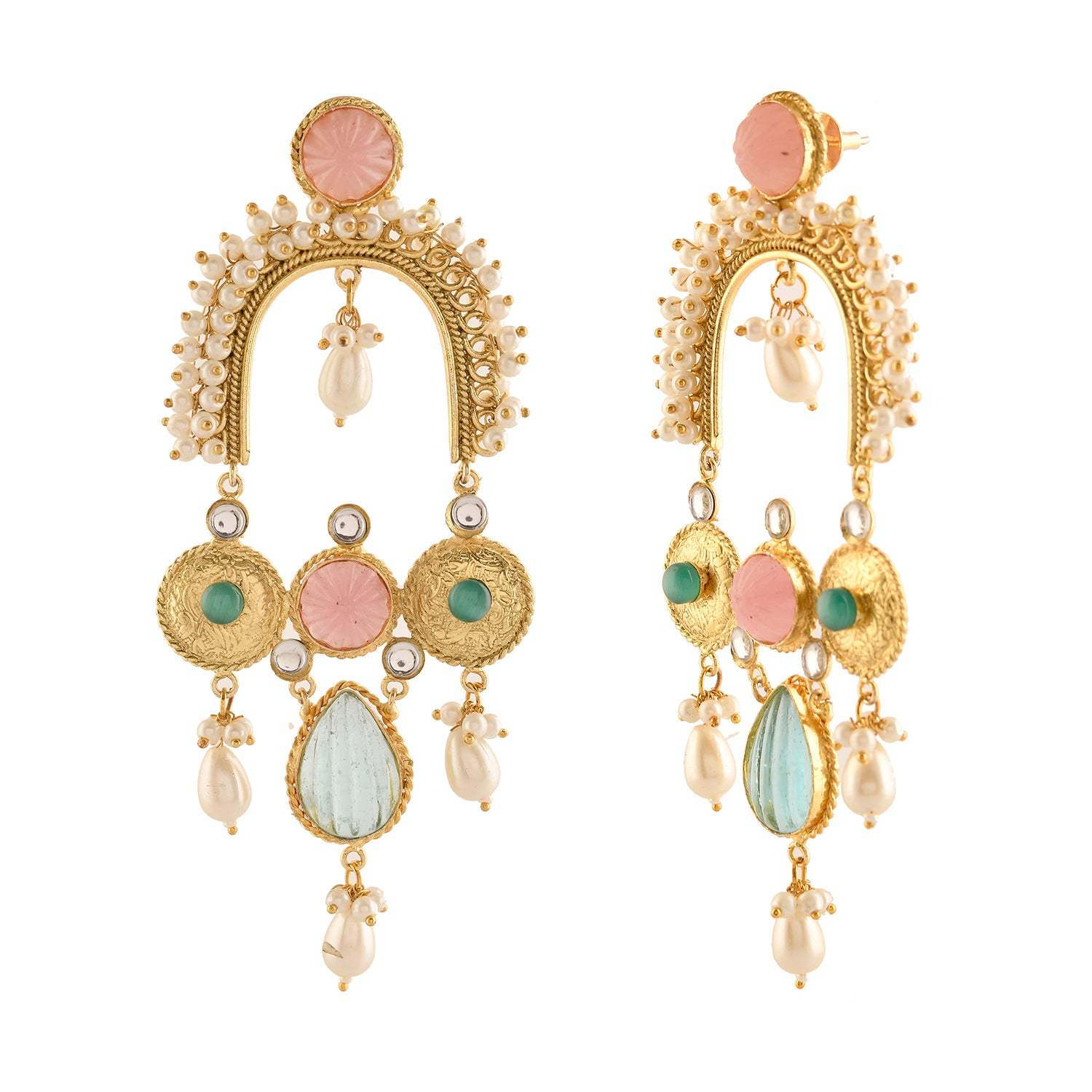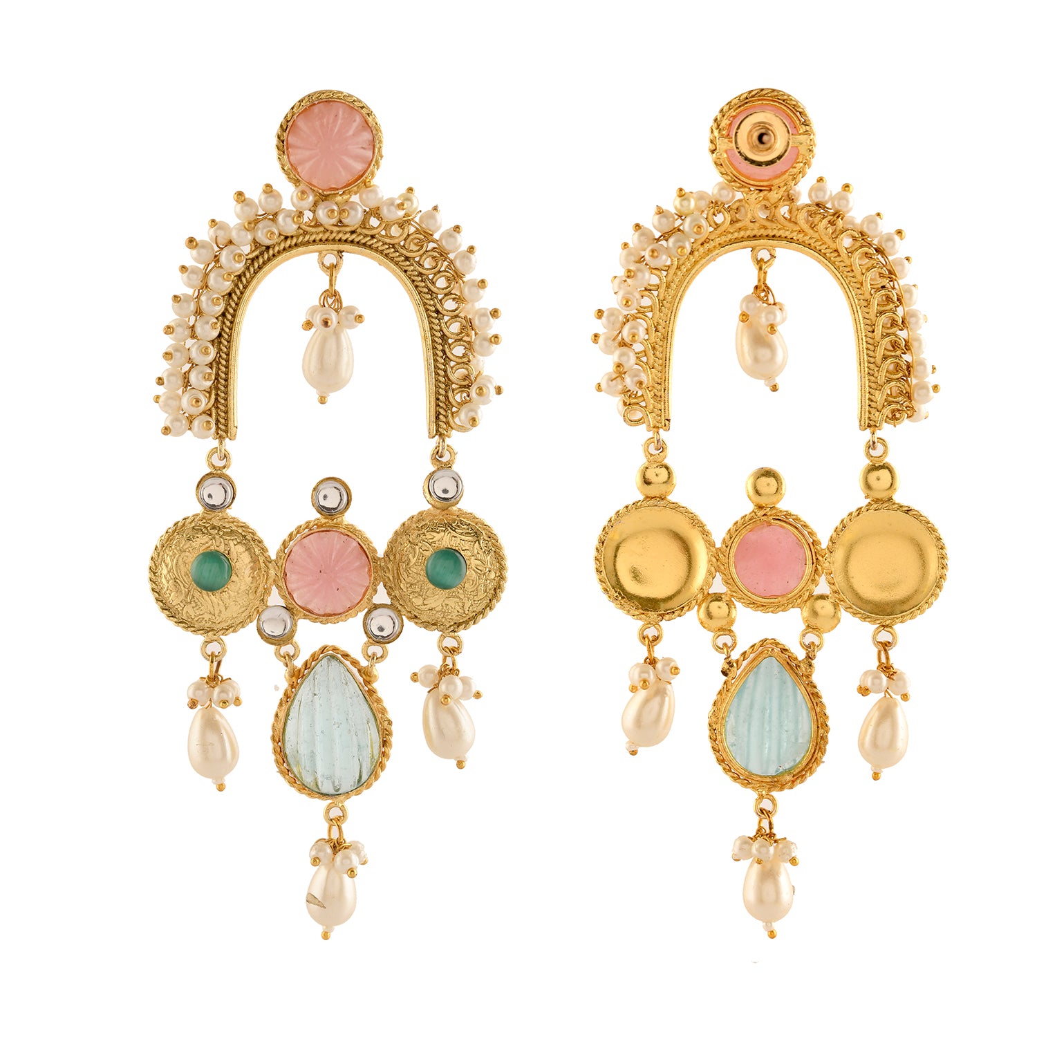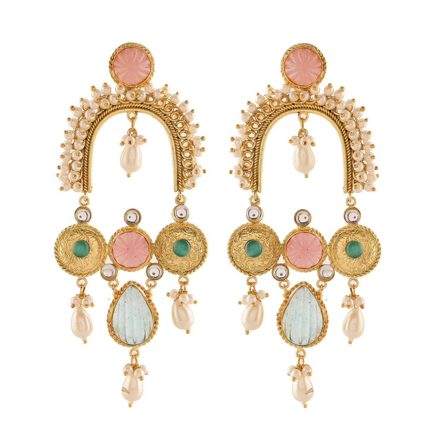 Antique Opulance Statement Pastel Pink Chandbali Earrings