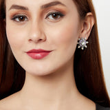 A lightweight and comfortable pair of stud earrings, fashioned out of brass and featuring delicate floral motifs. Silver plating adds to the charm of this lightly embellished pair, which will make a good addition to your collection of everyday jewellery pieces. Wear with a casual saree or kurta.