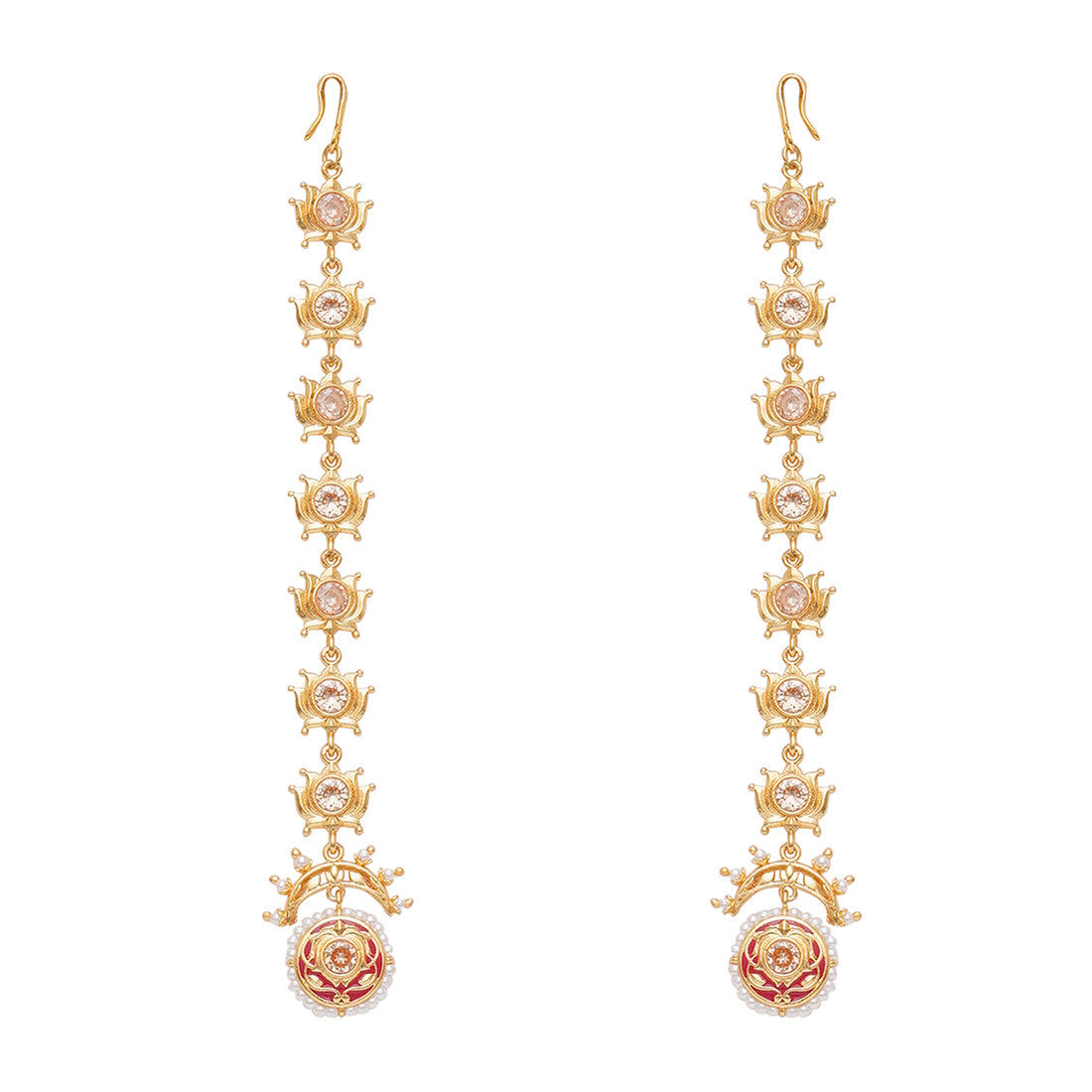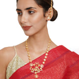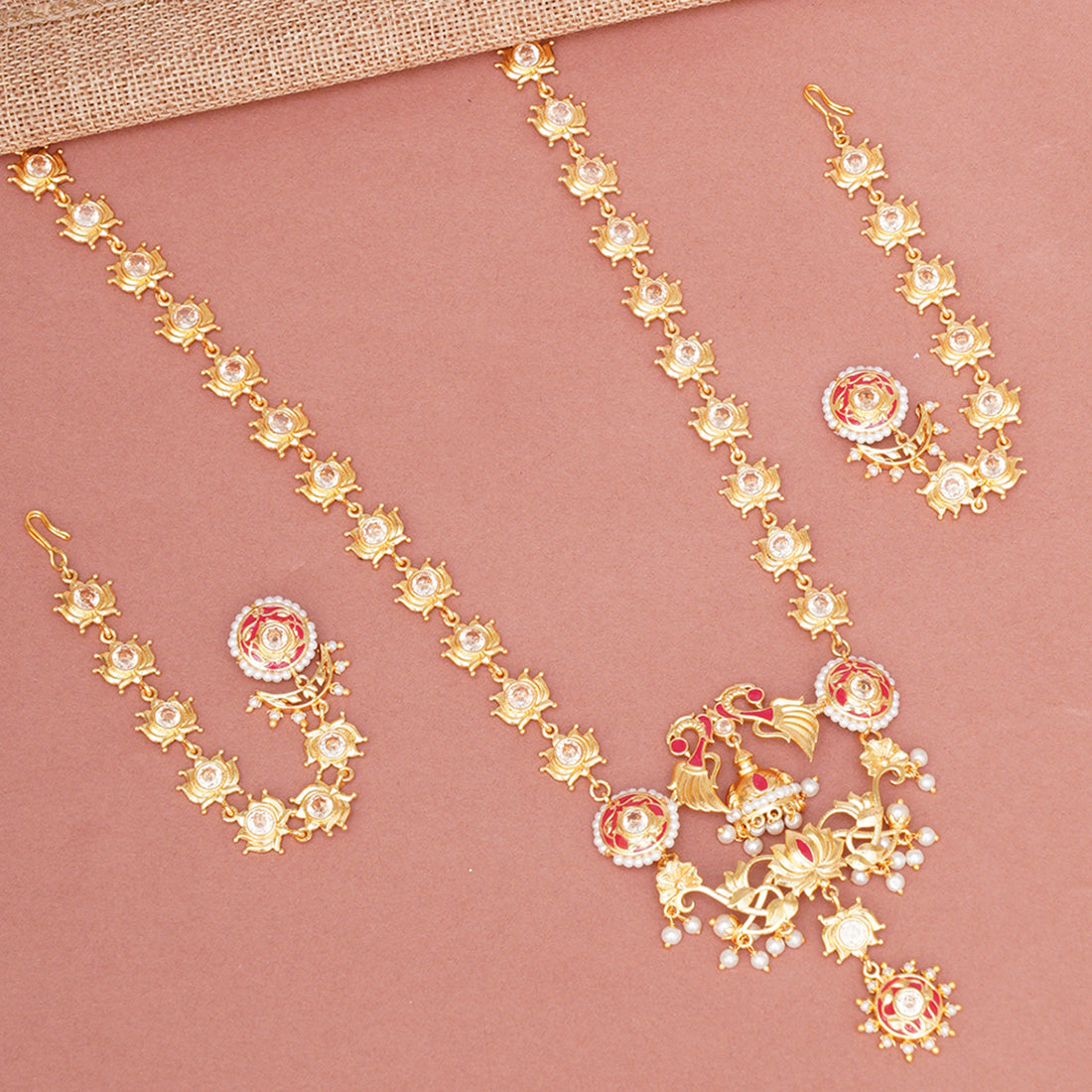 From minimalist to statement, our necklaces are multifaceted, always fashionable, and add a splash of personality to any wardrobe. This set showcases beauitful motifs of the national flower and bird of India and makes for an absolutely stunning accessory for ethnic wear.