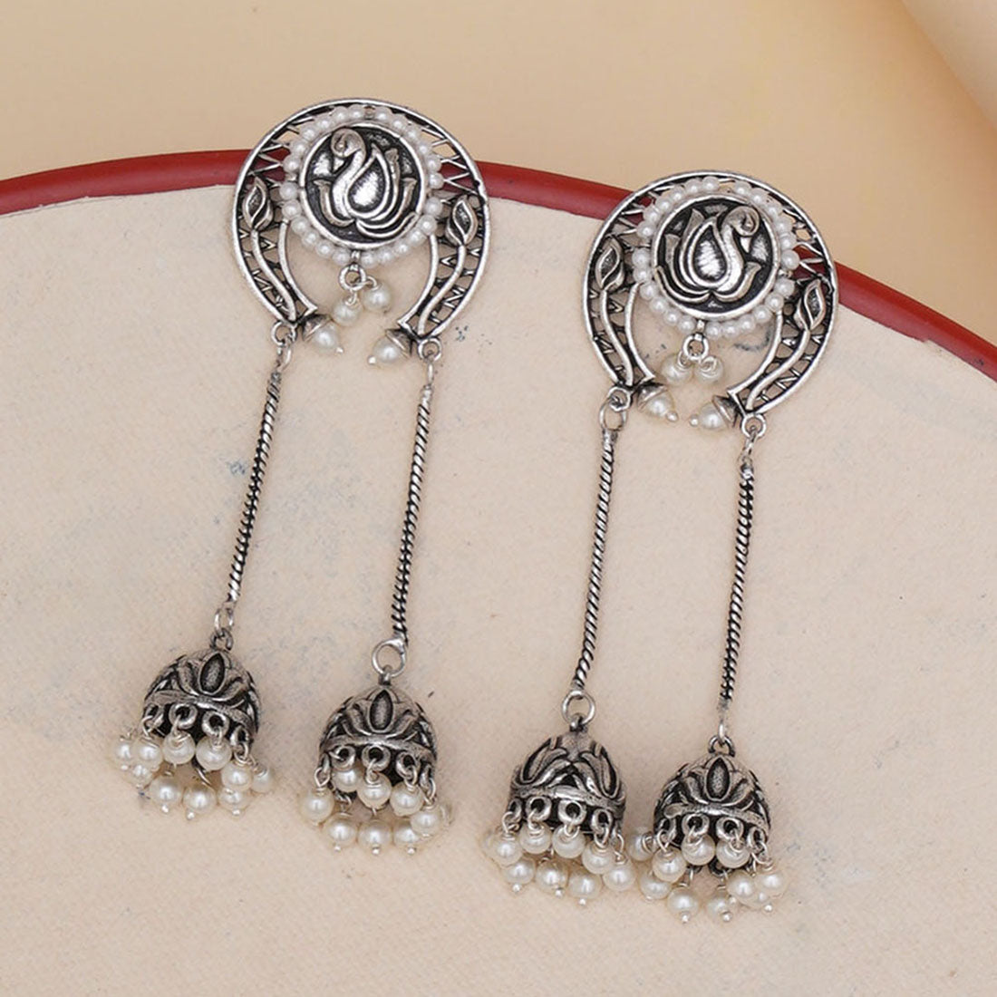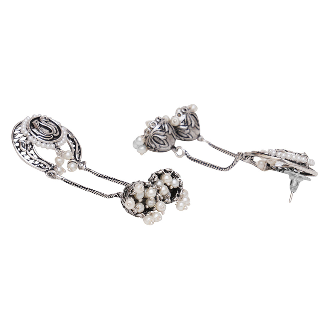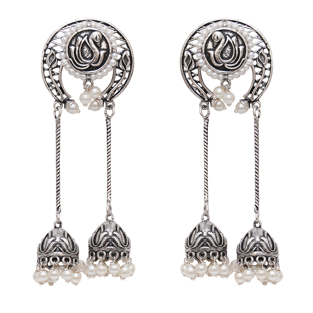 Let's gear up this season of festivities! Featuring an intricate floral design and alluring trinklets earring from our Apsara collection; these earrings are long-lasting and rust resistant. You can carry these adorable pair with your Indian Traditional or Boho Wardrobes.