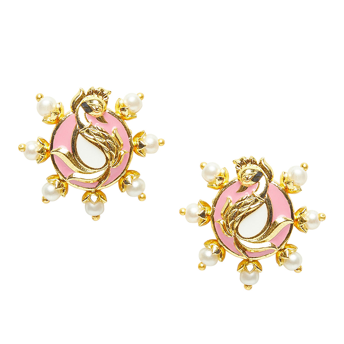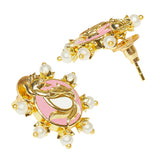 Shwet Kamal Pink Enamel Faux Kundan and Pearls Adorned Gold Plated Stud Earrings