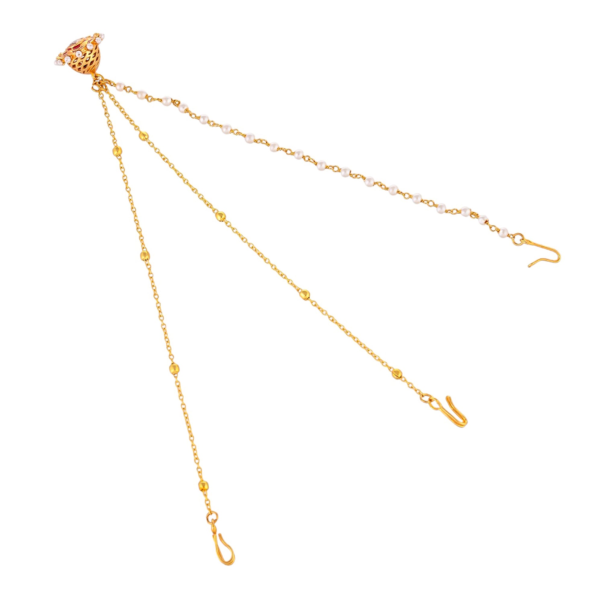 Apsara Yellow Gold Plated Faux Pearls Adorned Brass Matha Patti Maang Tika