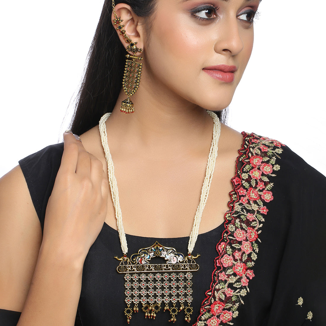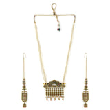 The Arabian Nights Round Brass Necklace with Oxidized Plating in Brass Material with genuine gems is the best that could happen to you. This piece gives you the confidence that you were looking for to walk into any party and make people take notice of you. Get this one in silver now and add this to your wardrobe.