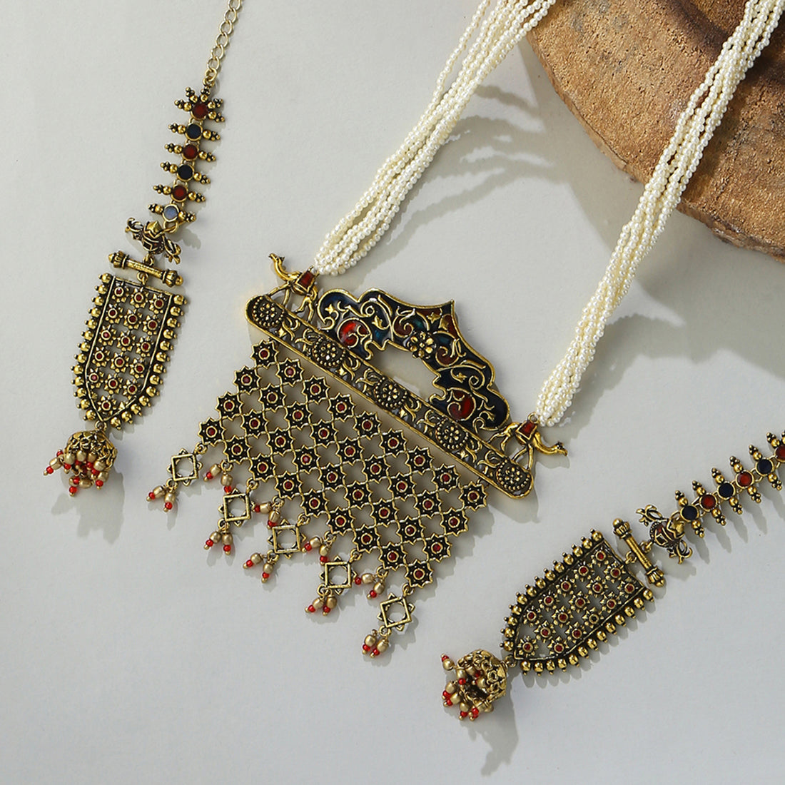 Arabian Nights Antique Gold Round Brass Jewellery Set