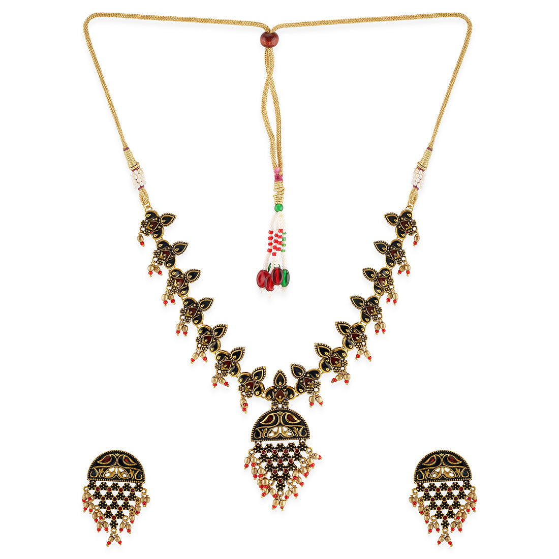 Unique Cleopatra design that defines the beauty you are. The necklace set in silver coating gives your dress more grace and the carefully crafted oval design goes smoothly with any dress you choose.