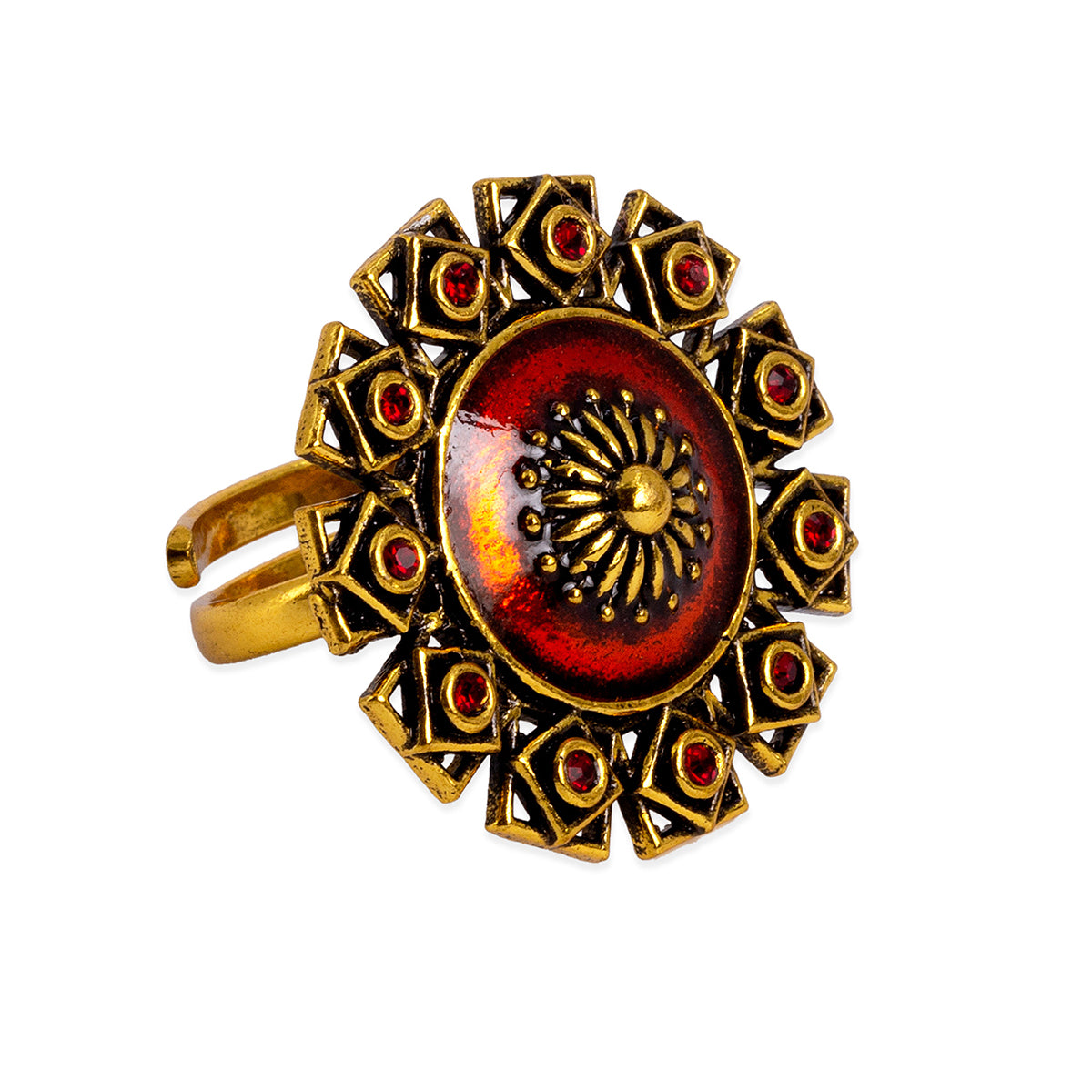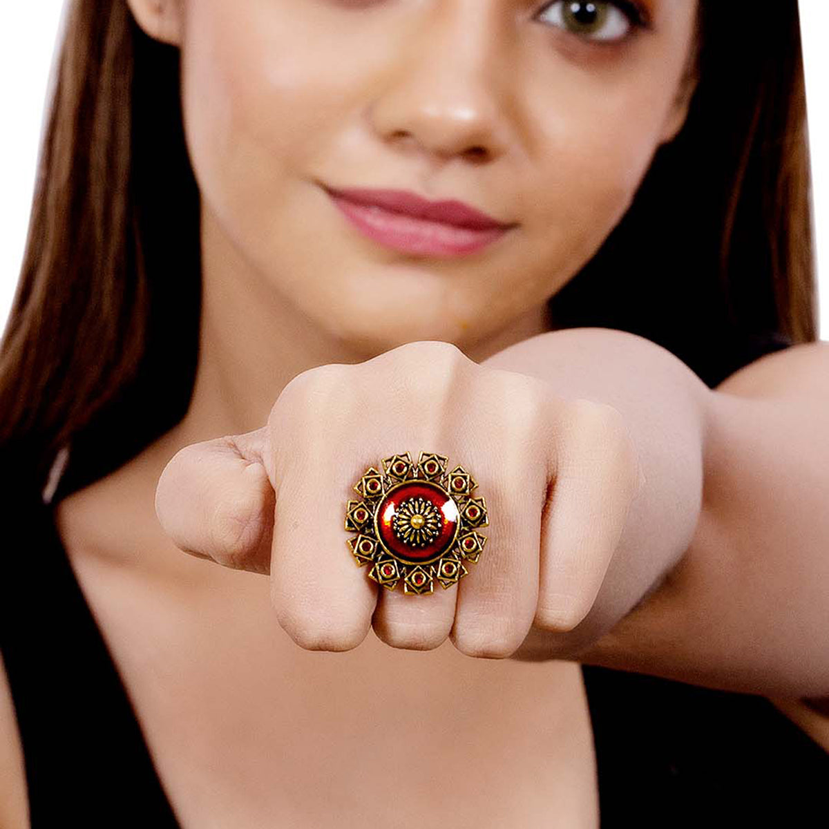 The Arabian Nights Brass round Rings with Oxidized Plating with Brass Material is the newest and the next thing you need to add to your wardrobe. Get this in Silver now and add oomph to your wardrobe right away!