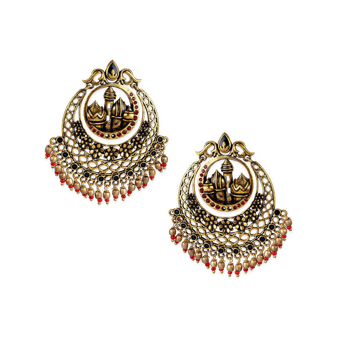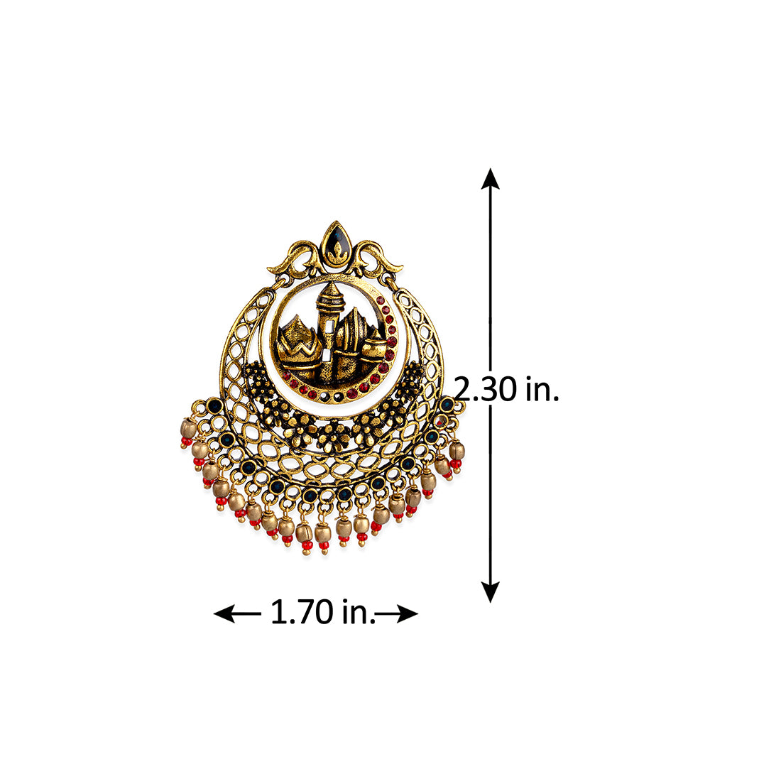 Arabian Nights Brass ear-rings with Antique Gold plating in Brass material With royal designs makes it very contemporary and makes it fit for your boho-chic days. Turn up in style to any occasion with this accessory adorned on your wrist. Get this piece in gold and amp up our style quotient.