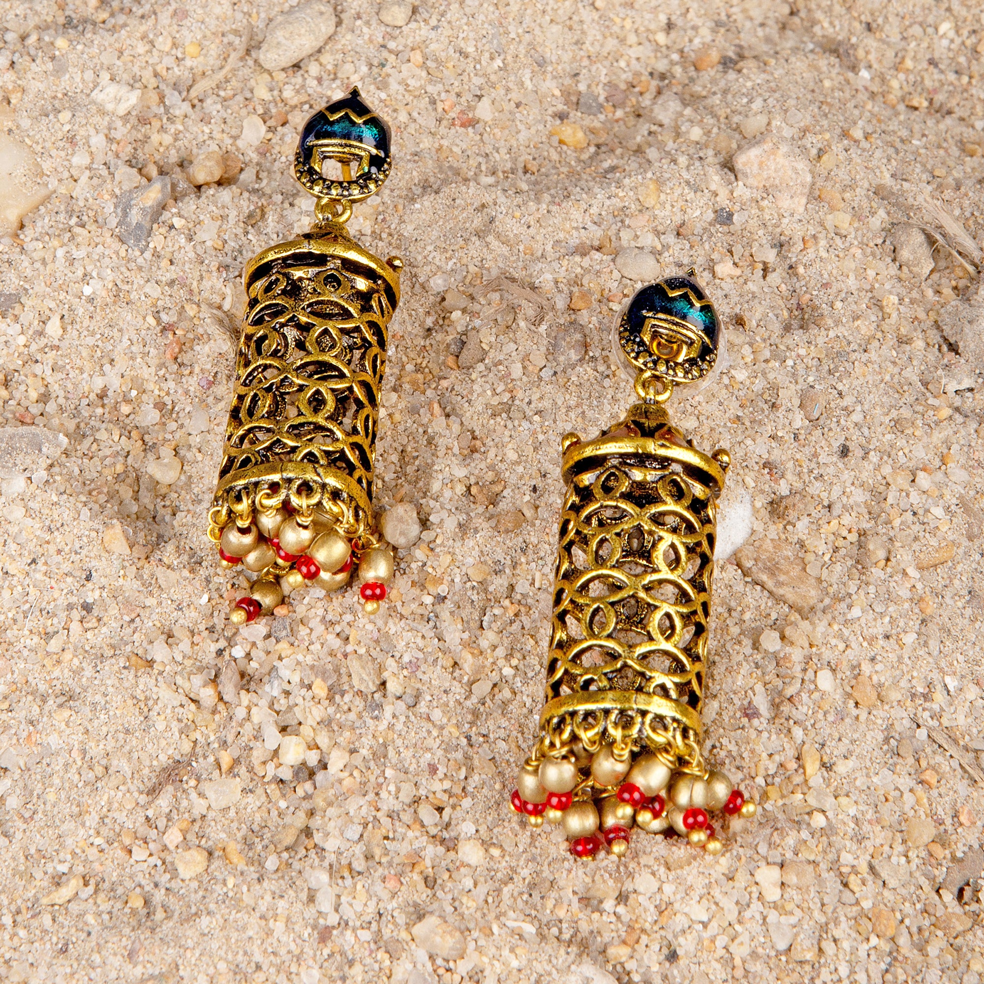 Arabian Nights Antique Golden Brass Jhumka Earrings