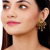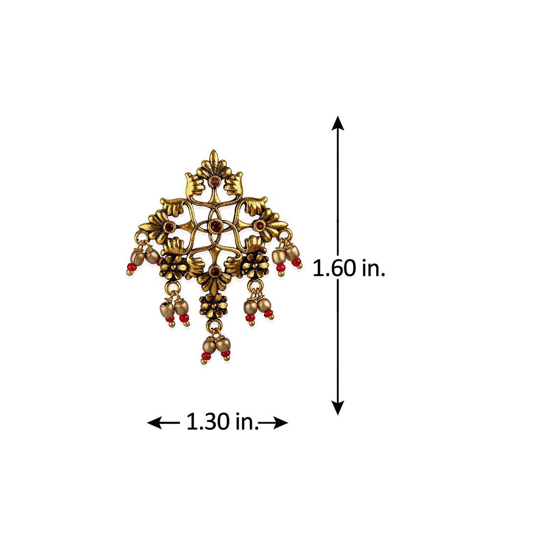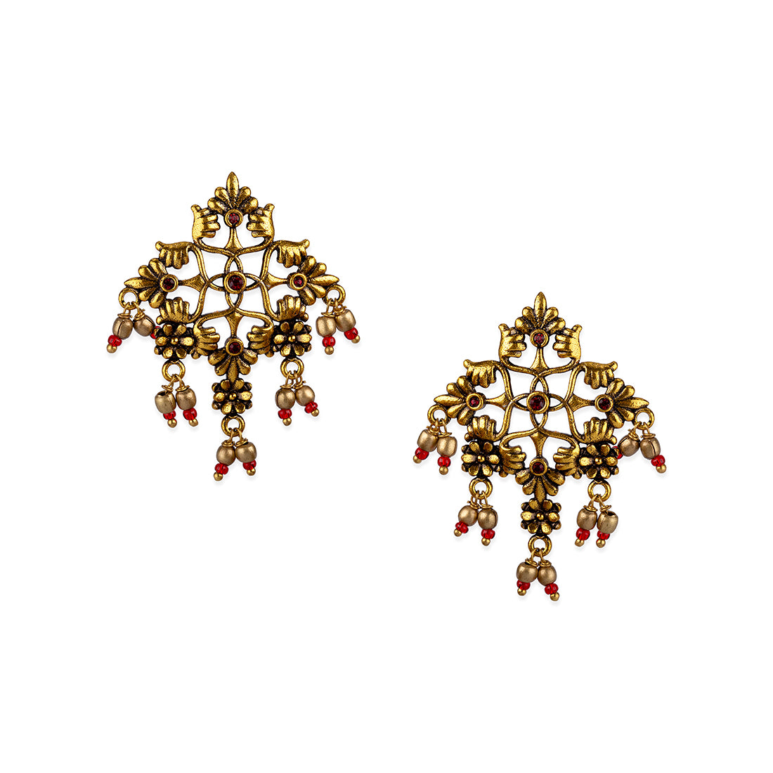 Arabian Nights Brass ear-rings with Antique gold plating in Brass material With royal designs makes it very contemporary and makes it fit for your boho-chic days. Turn up in style to any occasion with this accessory adorned on your wrist. Get this piece in gold and amp up our style quotient.