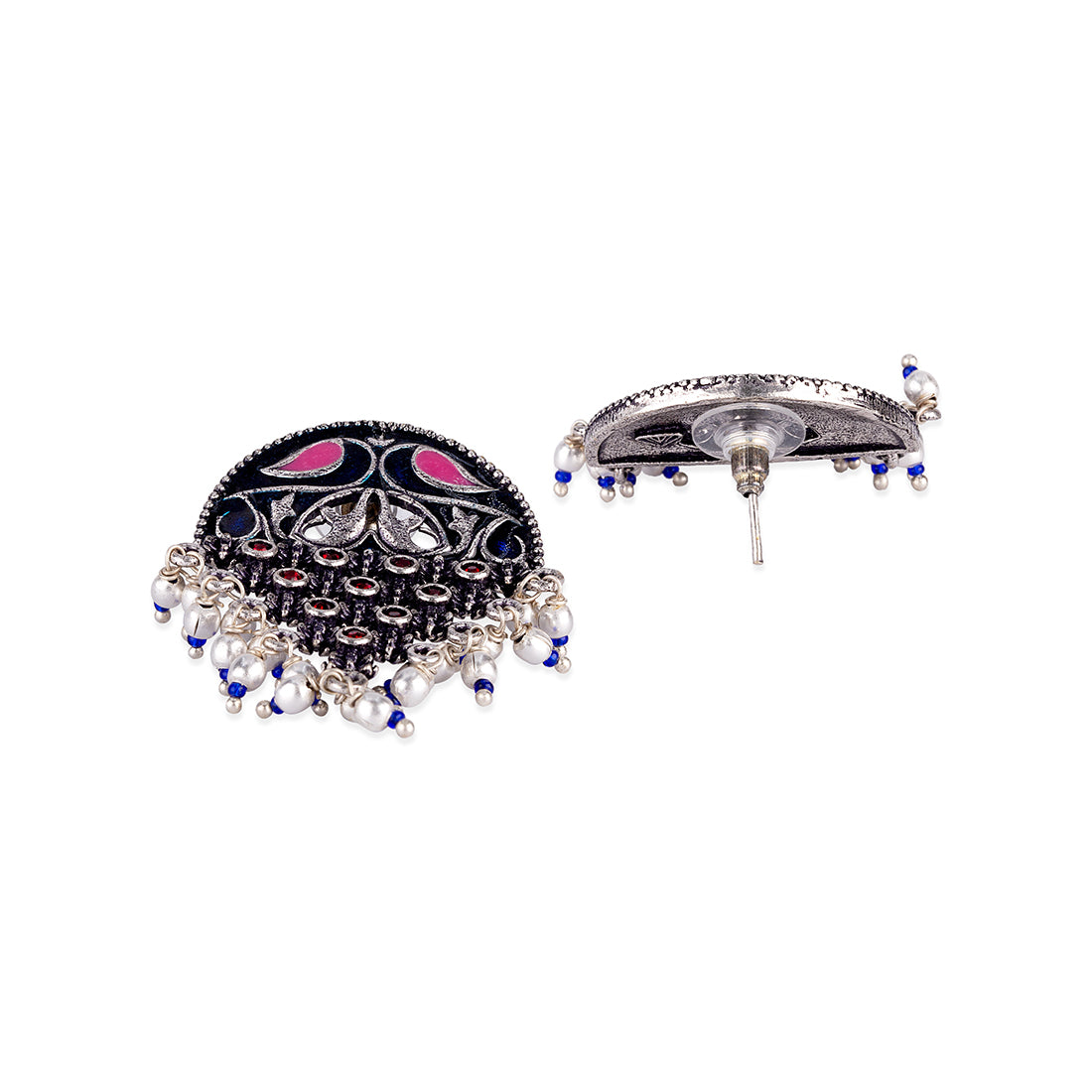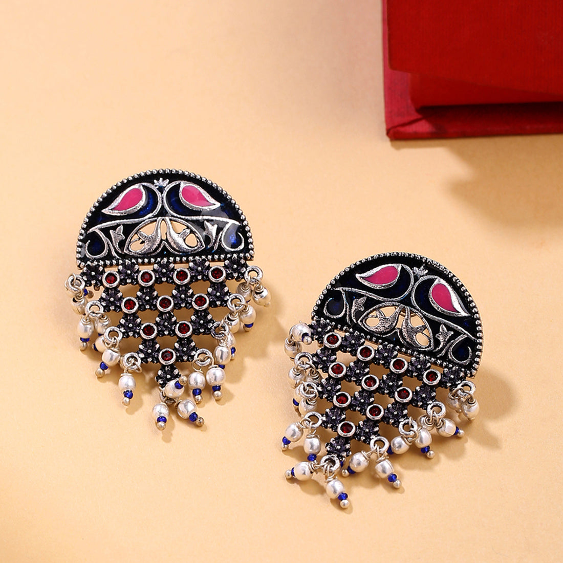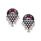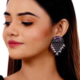 Arabian Nights Brass ear-rings with Oxidized plating in Brass material With royal designs makes it very contemporary and makes it fit for your boho-chic days. Turn up in style to any occasion with this accessory adorned on your wrist. Get this piece in pink and black and amp up our style quotient.