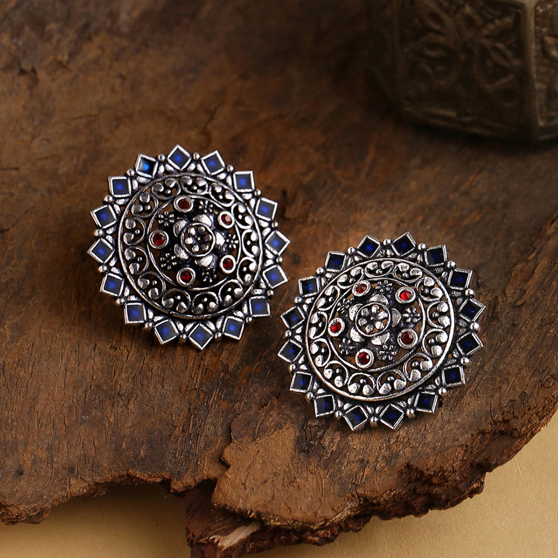 Arabian Nights Antique Oxidized Silver Brass Stud Earrings