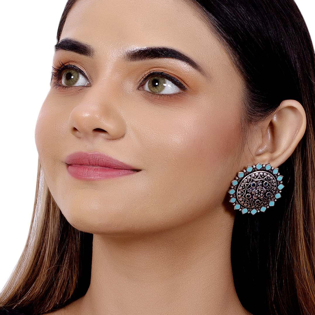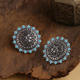 Arabian Nights Antique Oxidized Silver Brass Stud Earrings