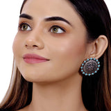 Arabian Nights Brass ear-rings with oxidized plating in Brass material With royal designs makes it very contemporary and makes it fit for your boho-chic days. Turn up in style to any occasion with this accessory adorned on your wrist. Get this piece in blue and silver and amp up our style quotient.