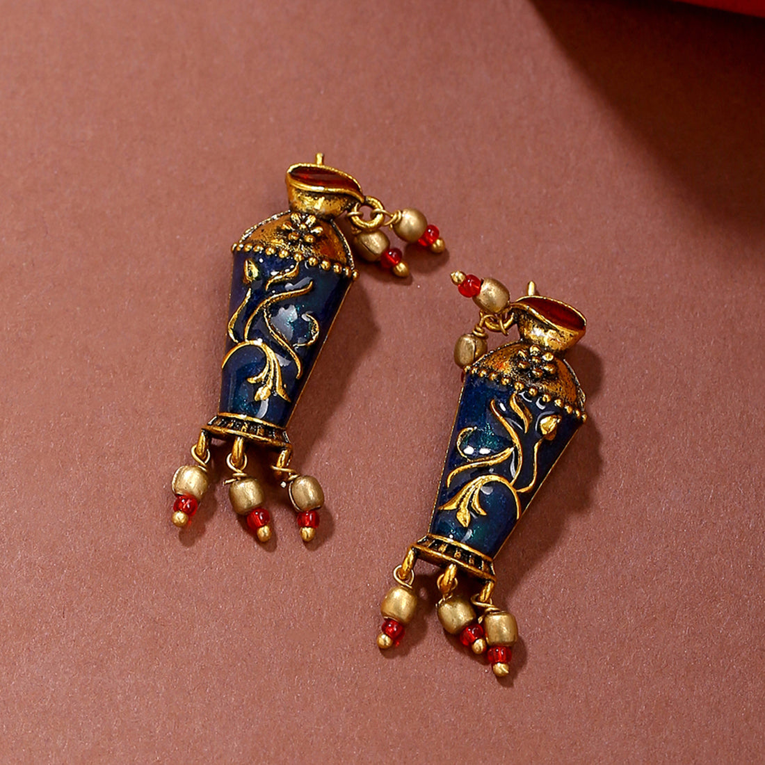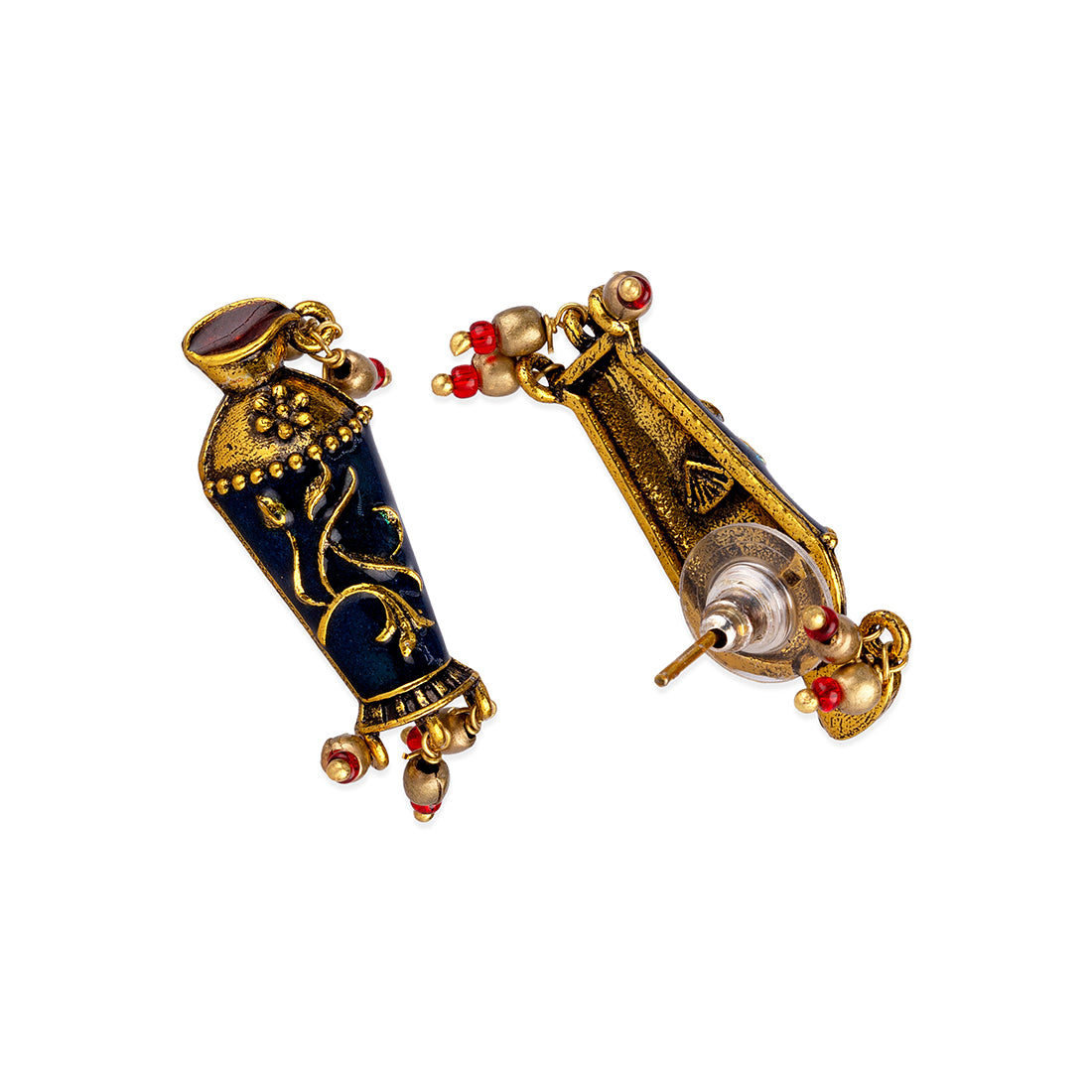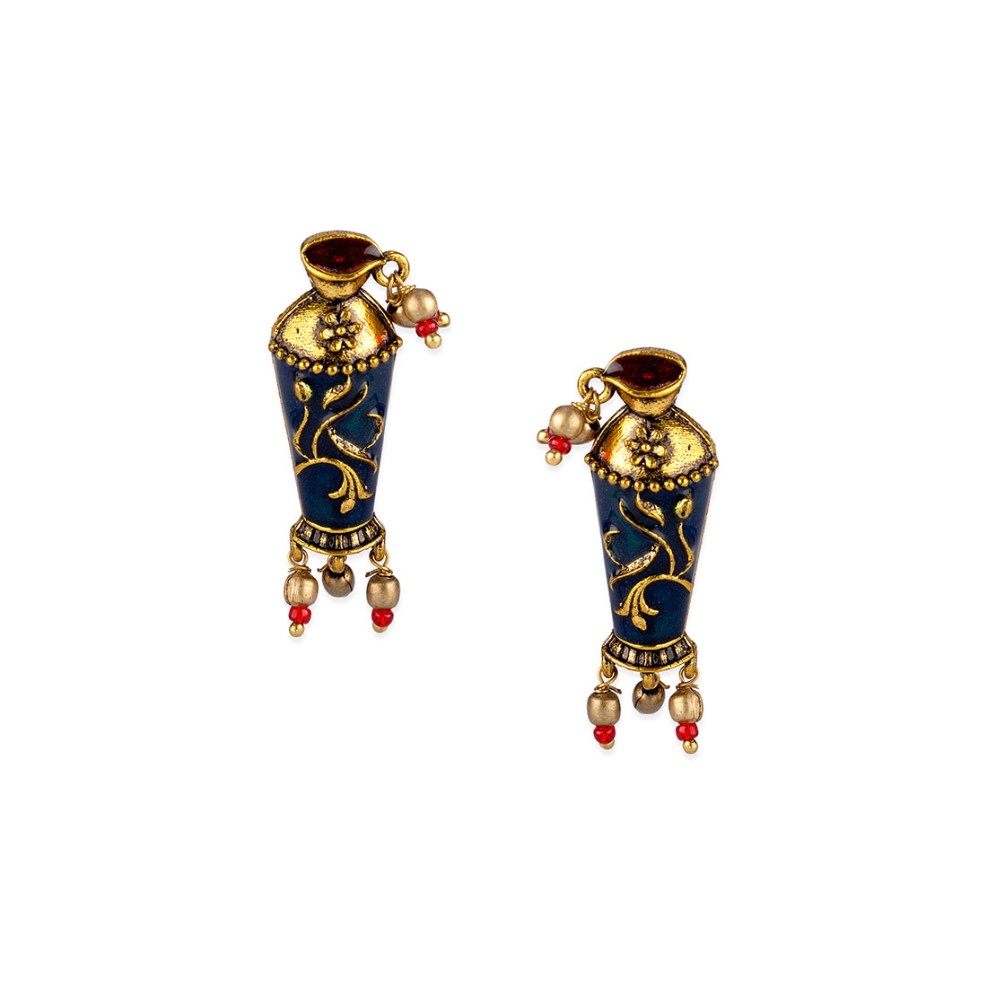 Arabian Nights Antique Pot Designed Golden Brass Earrings