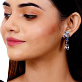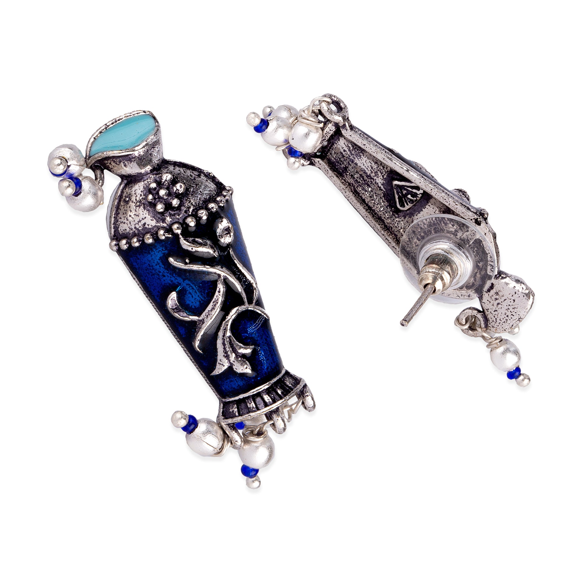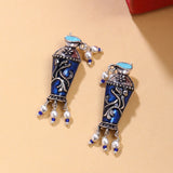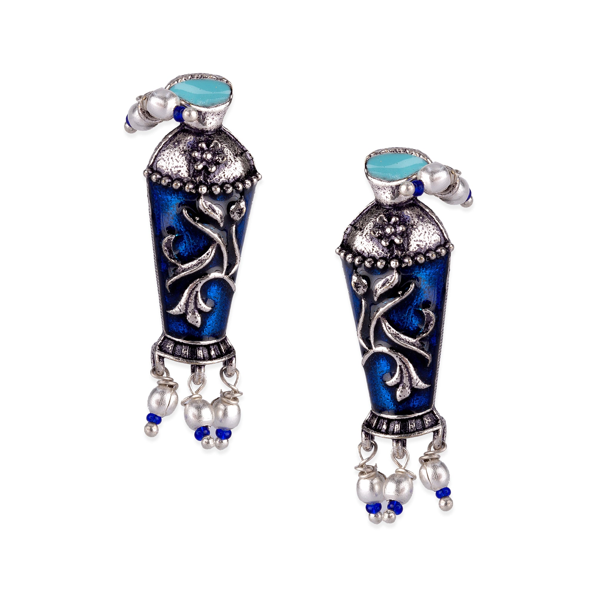 Arabian Nights Brass ear-rings with oxidized plating in Brass material With royal designs makes it very contemporary and makes it fit for your boho-chic days. Turn up in style to any occasion with this accessory adorned on your wrist. Get this piece in black and amp up our style quotient.
