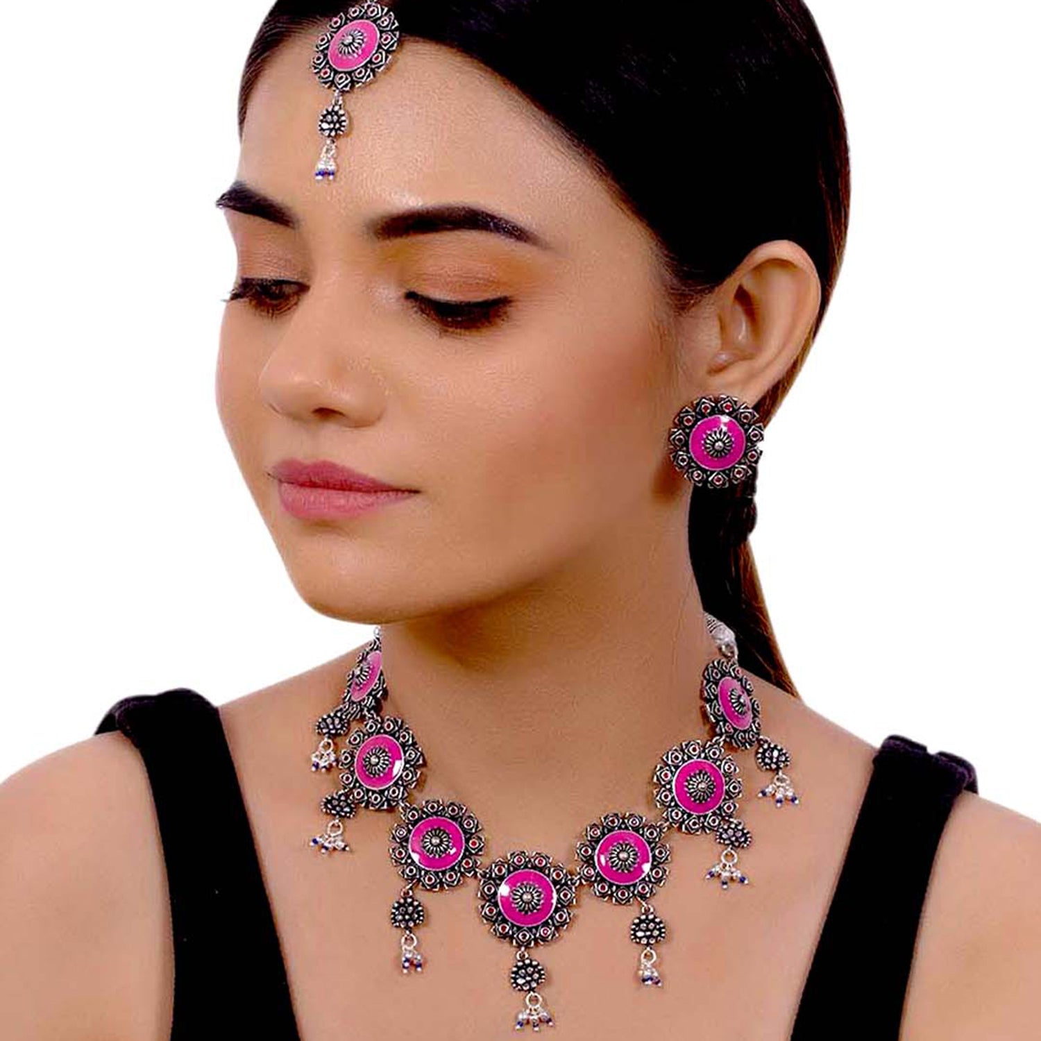 Arabian Nights Antique Silver Round Brass Jewellery Set