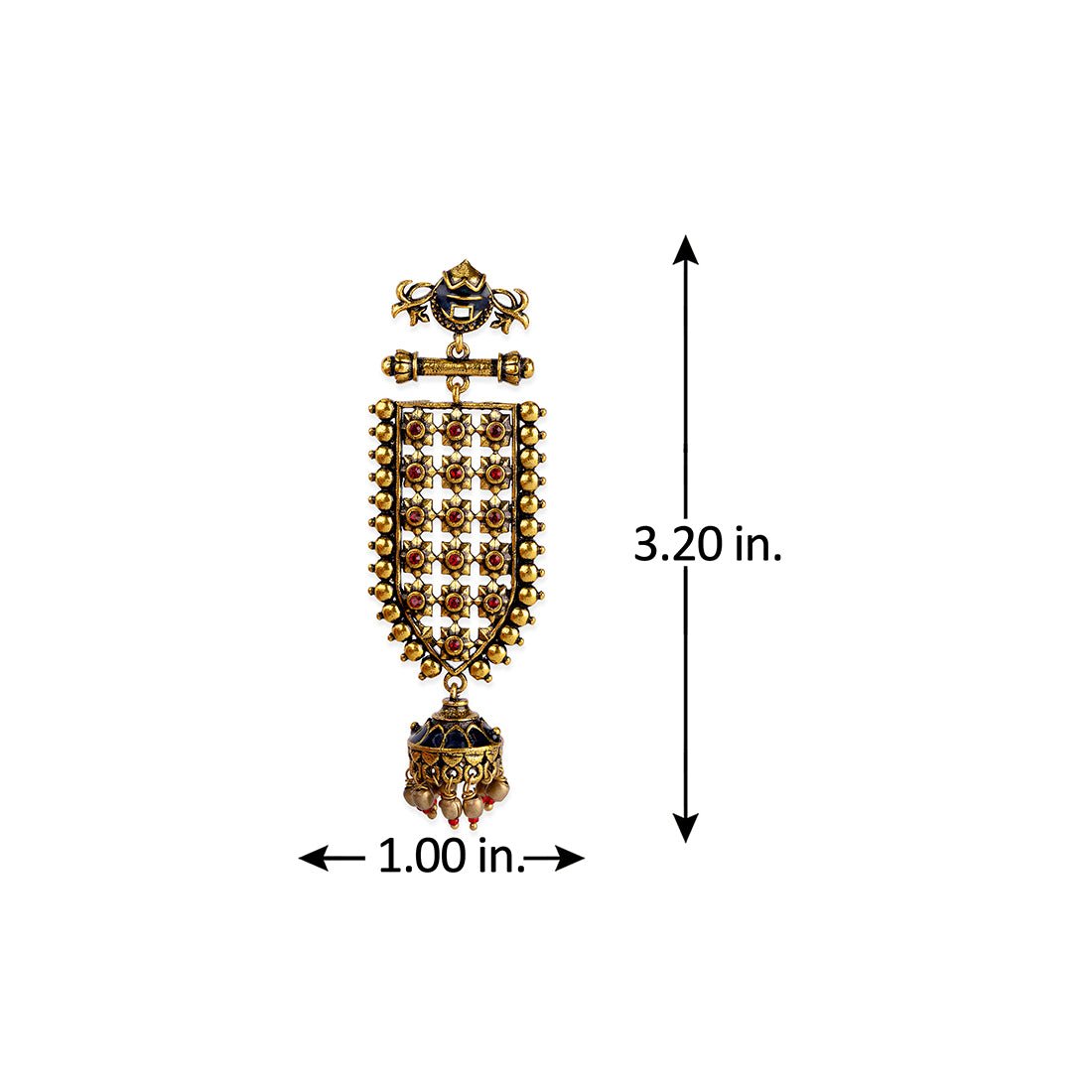 Arabian Nights Brass ear-rings with Antique gold plating in Brass material With royal designs makes it very contemporary and makes it fit for your boho-chic days. Turn up in style to any occasion with this accessory adorned on your wrist. Get this piece in gold and amp up our style quotient.