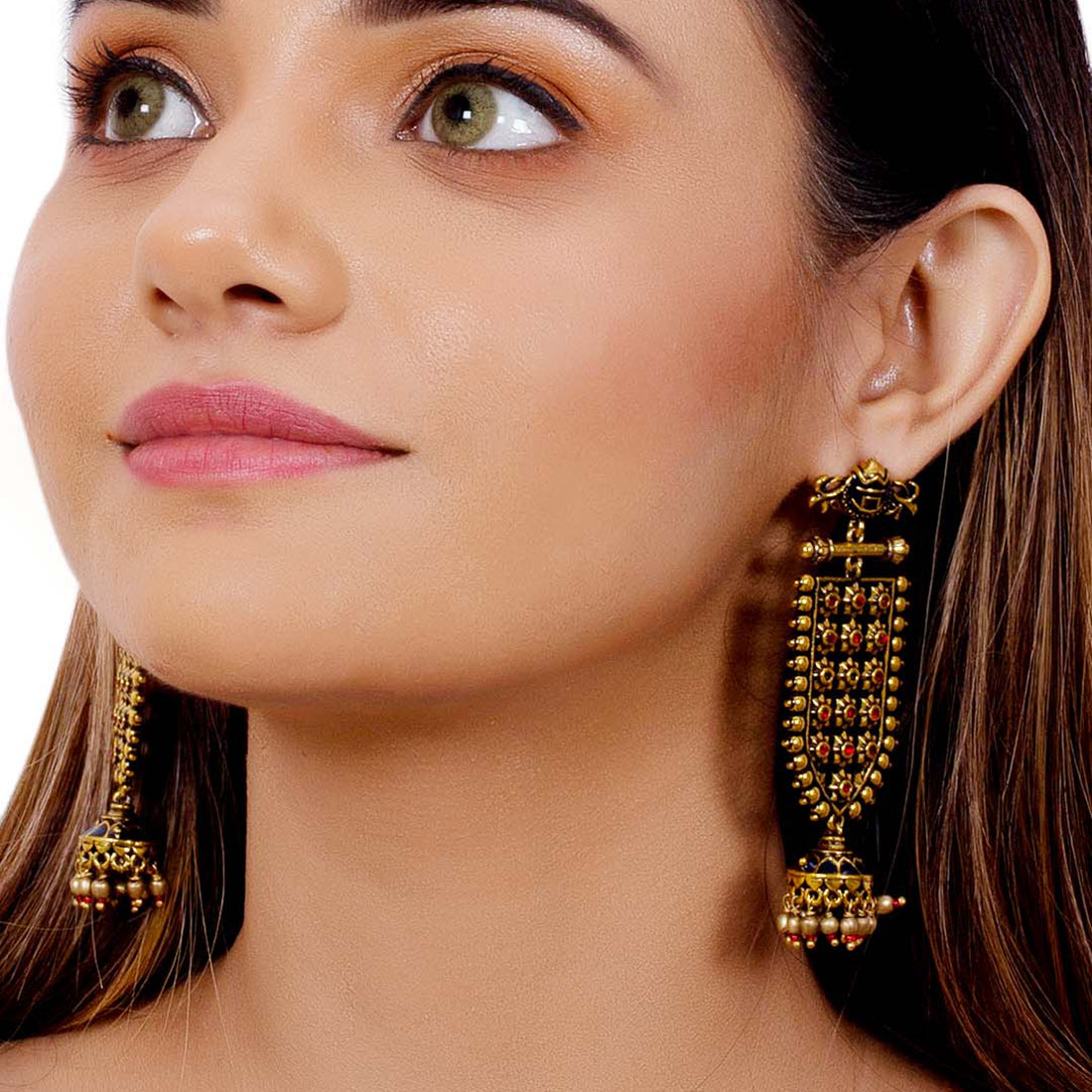 Arabian Nights Antique Traditional Golden Brass Earrings