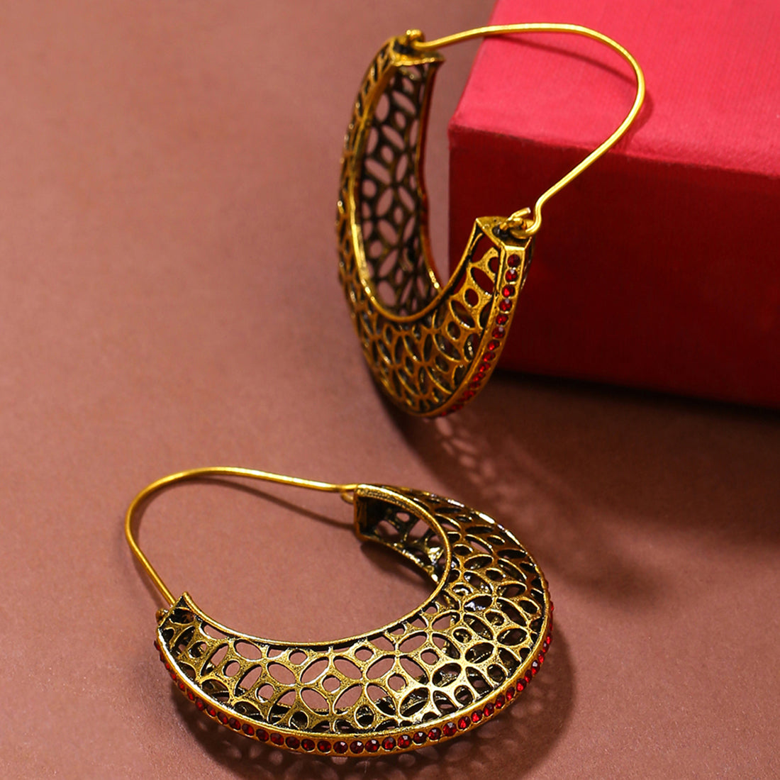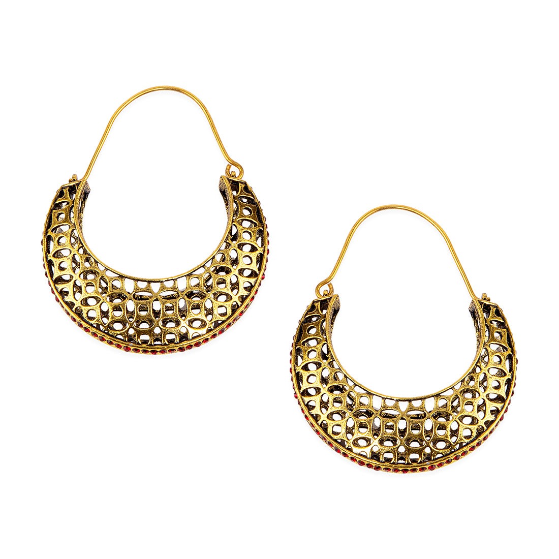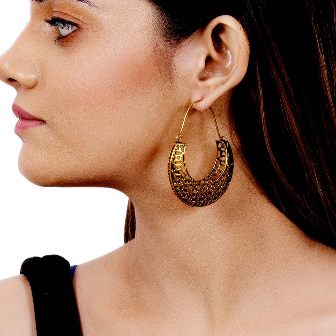 Arabian Nights Brass Earrings Antique Gold Plating Brass Material With the Royal Design which is also easy to Carry with all the Outfits , Gold in Colour