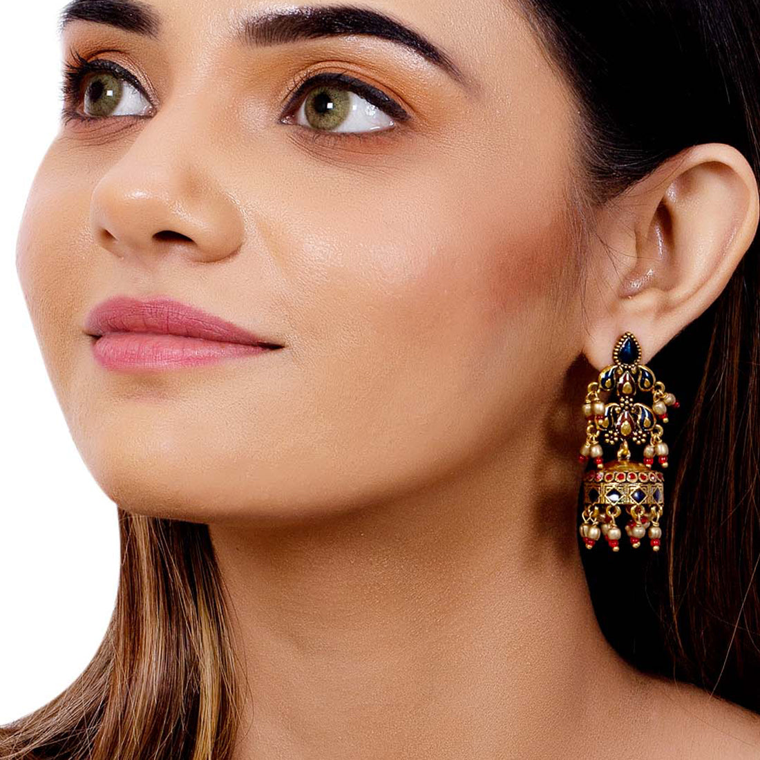 Arabian Nights Brass Earrings Antique Gold Plating Brass Material With the Royal Design which is also easy to Carry with all the Outfits , Gold in Colour