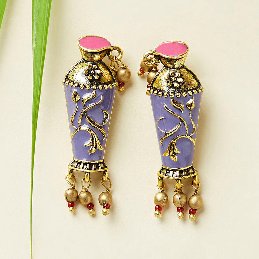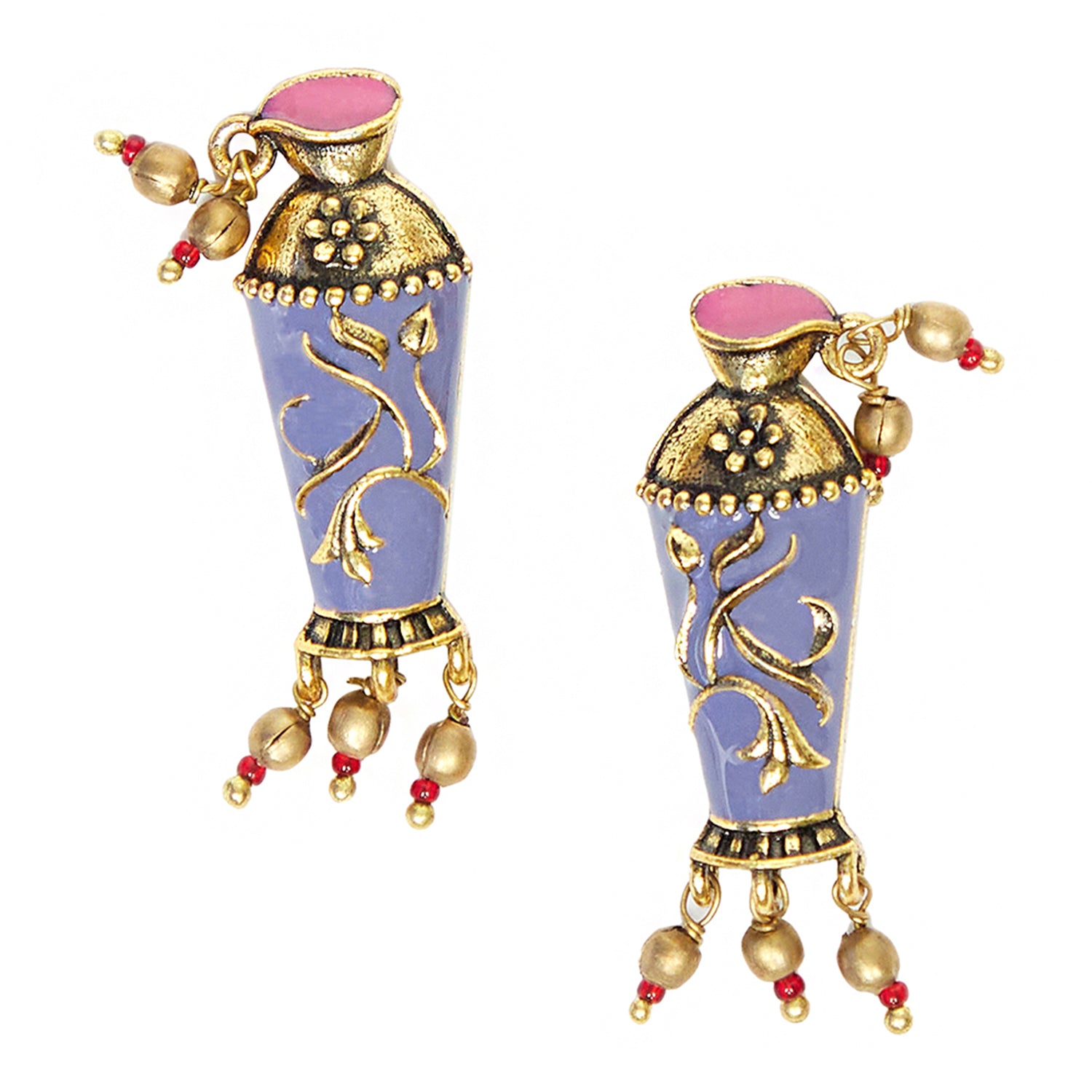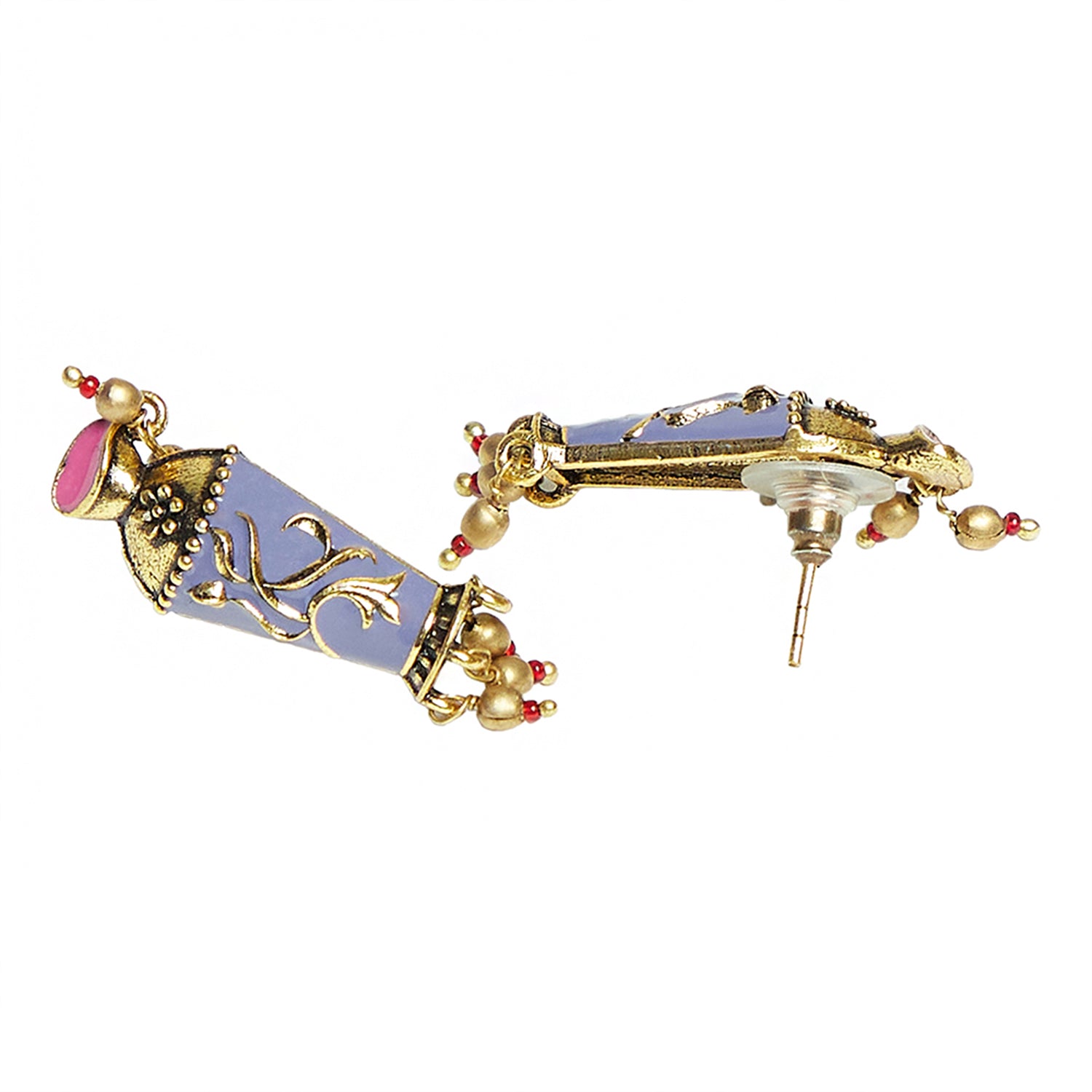 Arabian Nights Enamelled Antique Gold Plated Brass Earrings