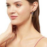 Lightly embellished and featuring enamelled details, these brass earrings have been given an antique gold plating for added charm. Lightweight and comfortable, this old-school pair will look splendid when paired with a Boho outfit or ethnic skirt.