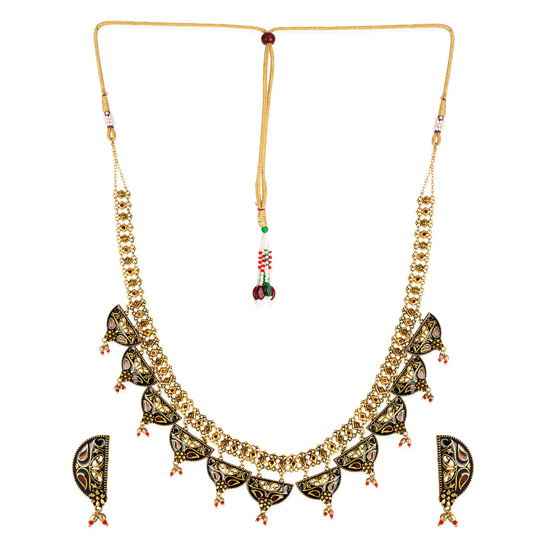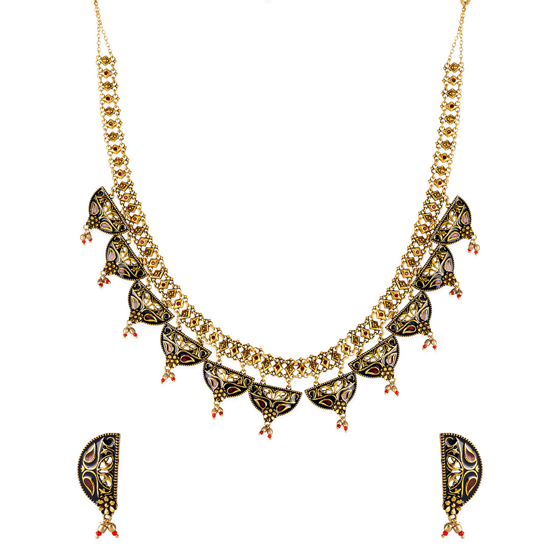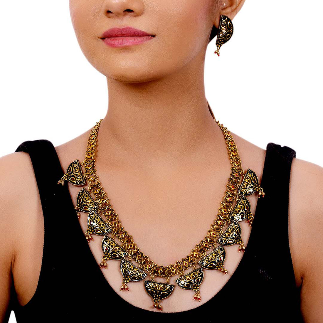 Arabian Nights Round Brass Necklace Sets Antique Gold Plating Brass Material With genuine gems which is also easy to Carry with all type of Outfits