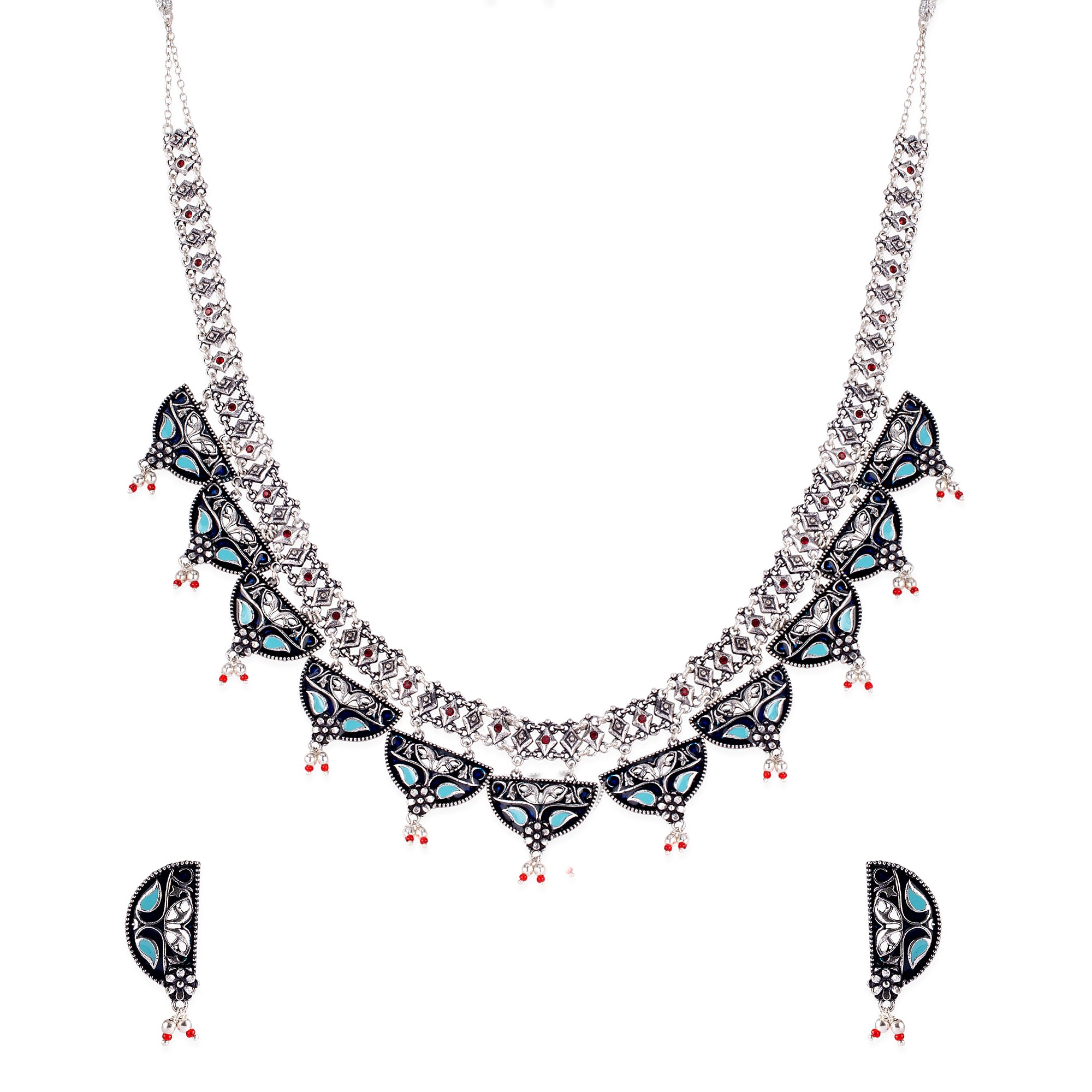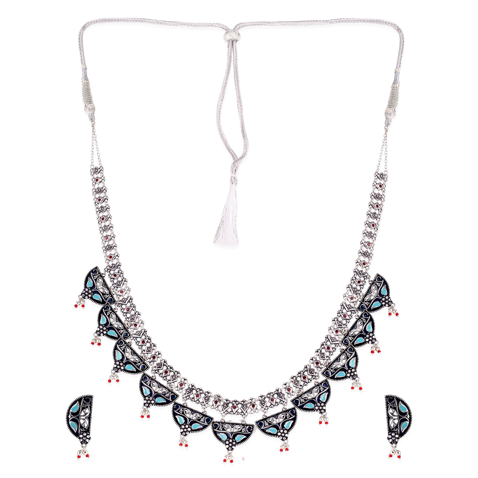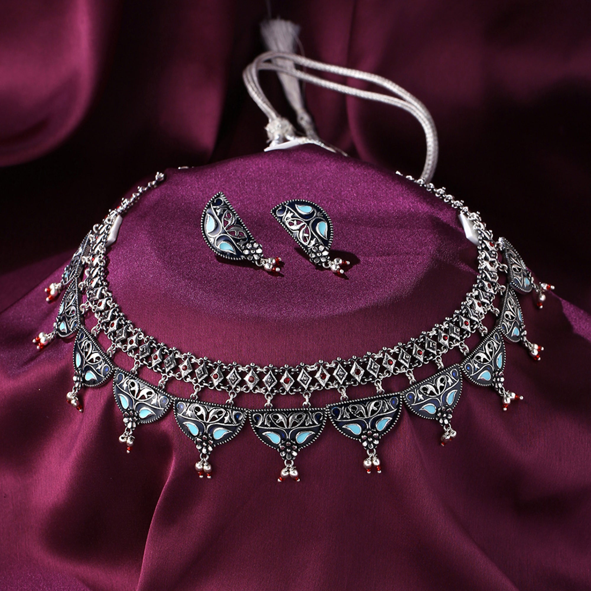 Arabian Nights Round Brass Necklace Sets Oxidised Plating Brass Material With genuine gems which is also easy to Carry with all type of Outfits