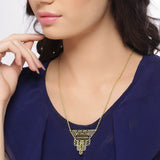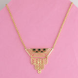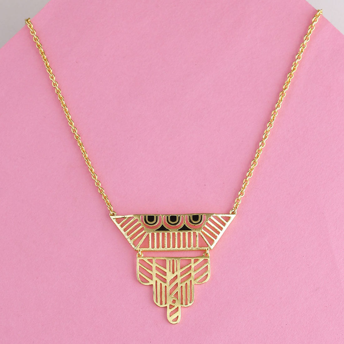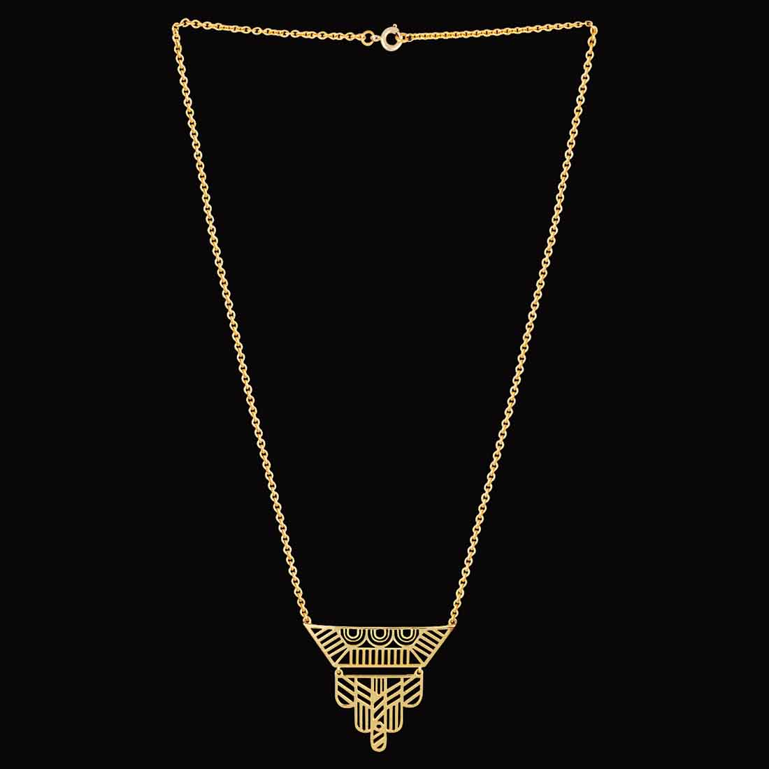 Filigree geometric patterns inspired necklace, crafted from brass. Yellow gold plated, the necklace will look splendid with all casual and work outfits.