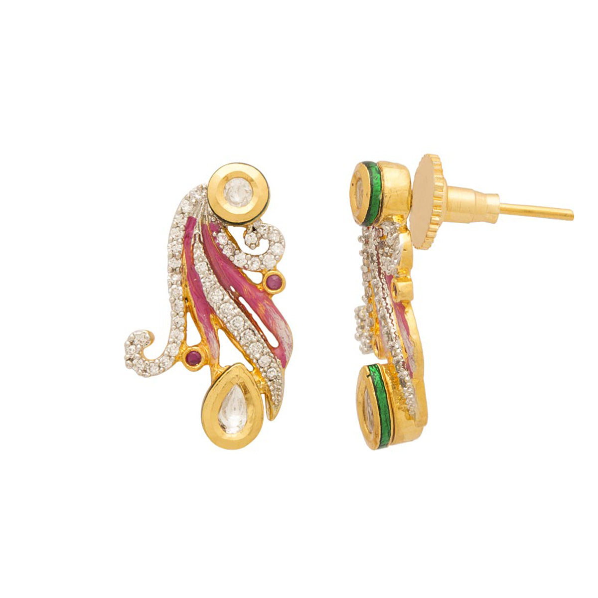 Step out in panache with garlanded American Diamond diamonds and golden plated pendant set. It is suitable for all occasions to flaunt your outstanding smartness. Wear it with all your attires ensembles.