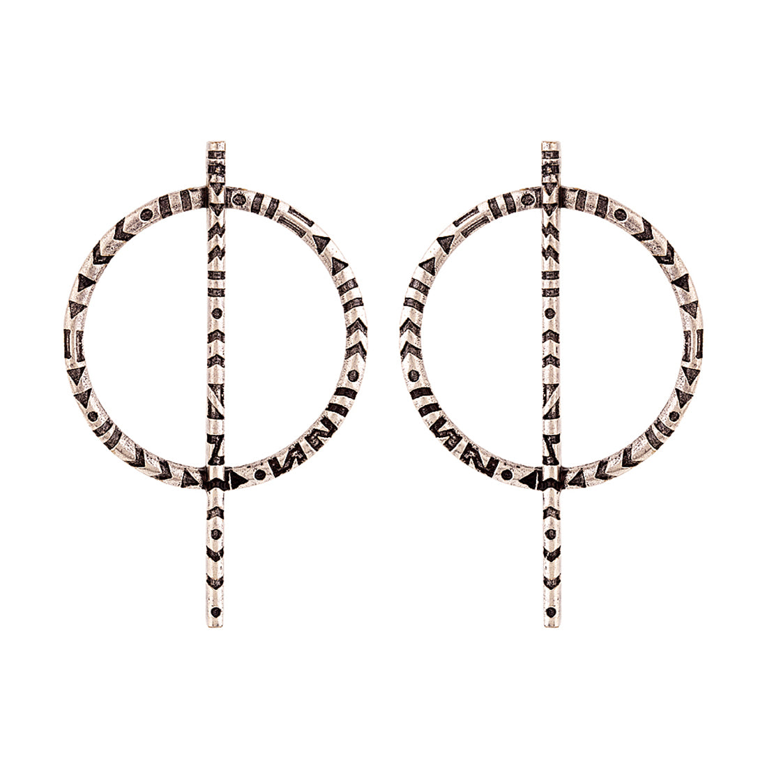 Circle and bar earrings made from brass. Oxidised silver plated and good for casual wear.